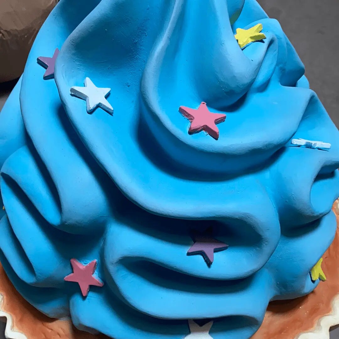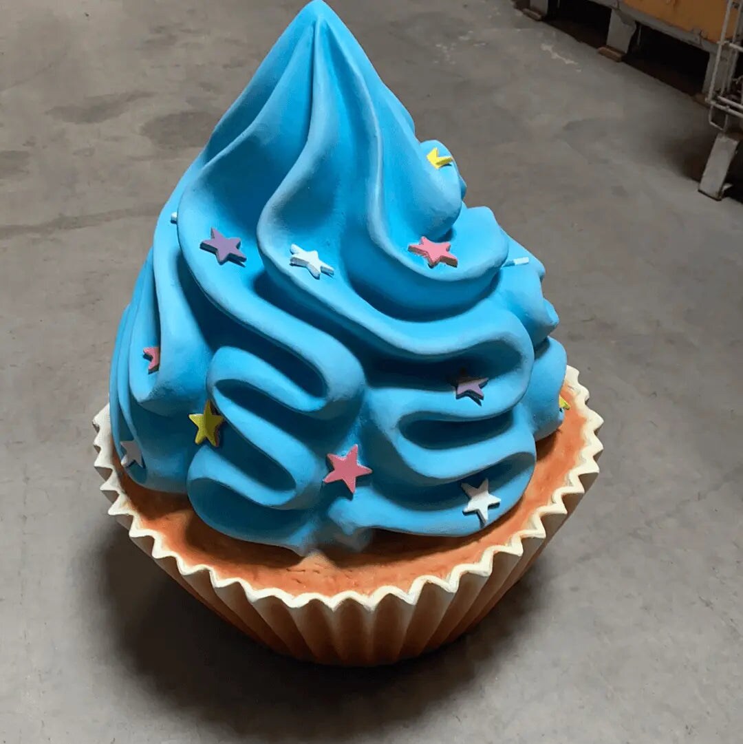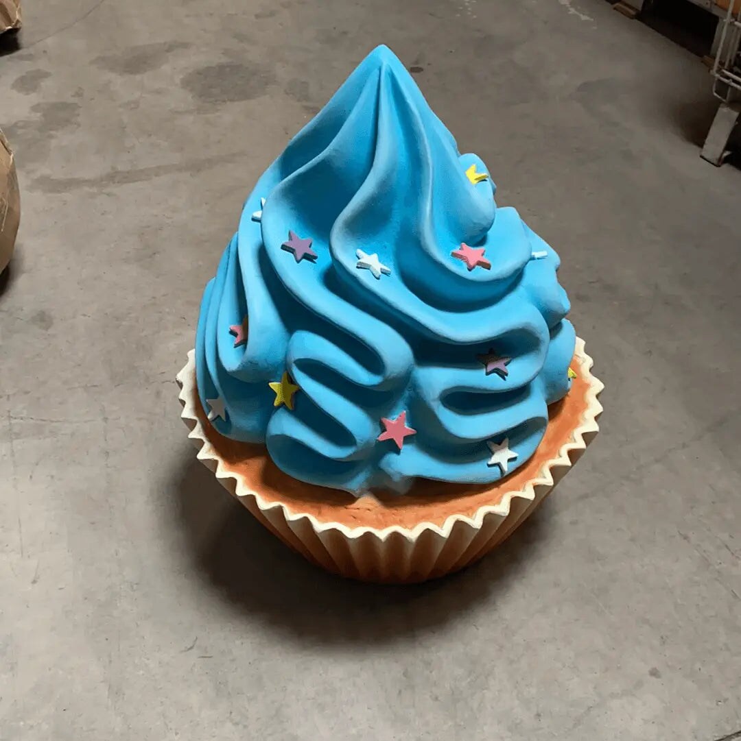 Blue Cupcake With Stars Over Sized Statue