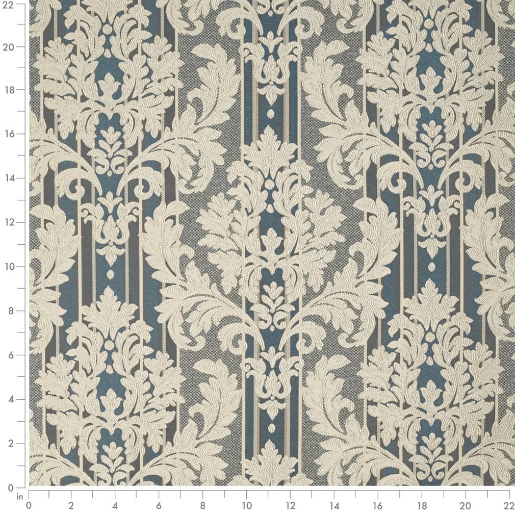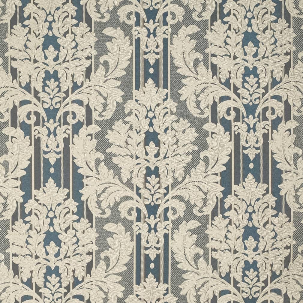 Blue Damask Stripe Woven Pattern Upholstery Fabric by The Yard - SKU: Hubert Royal
