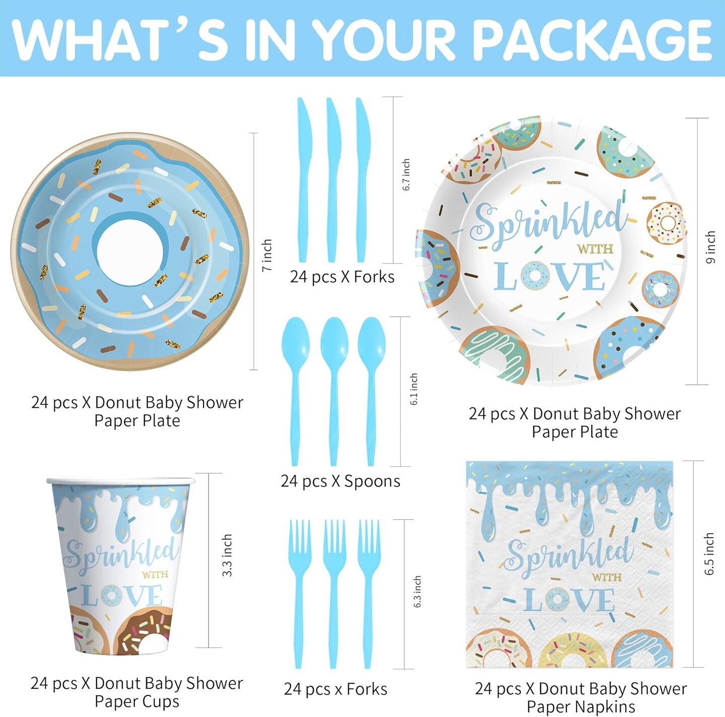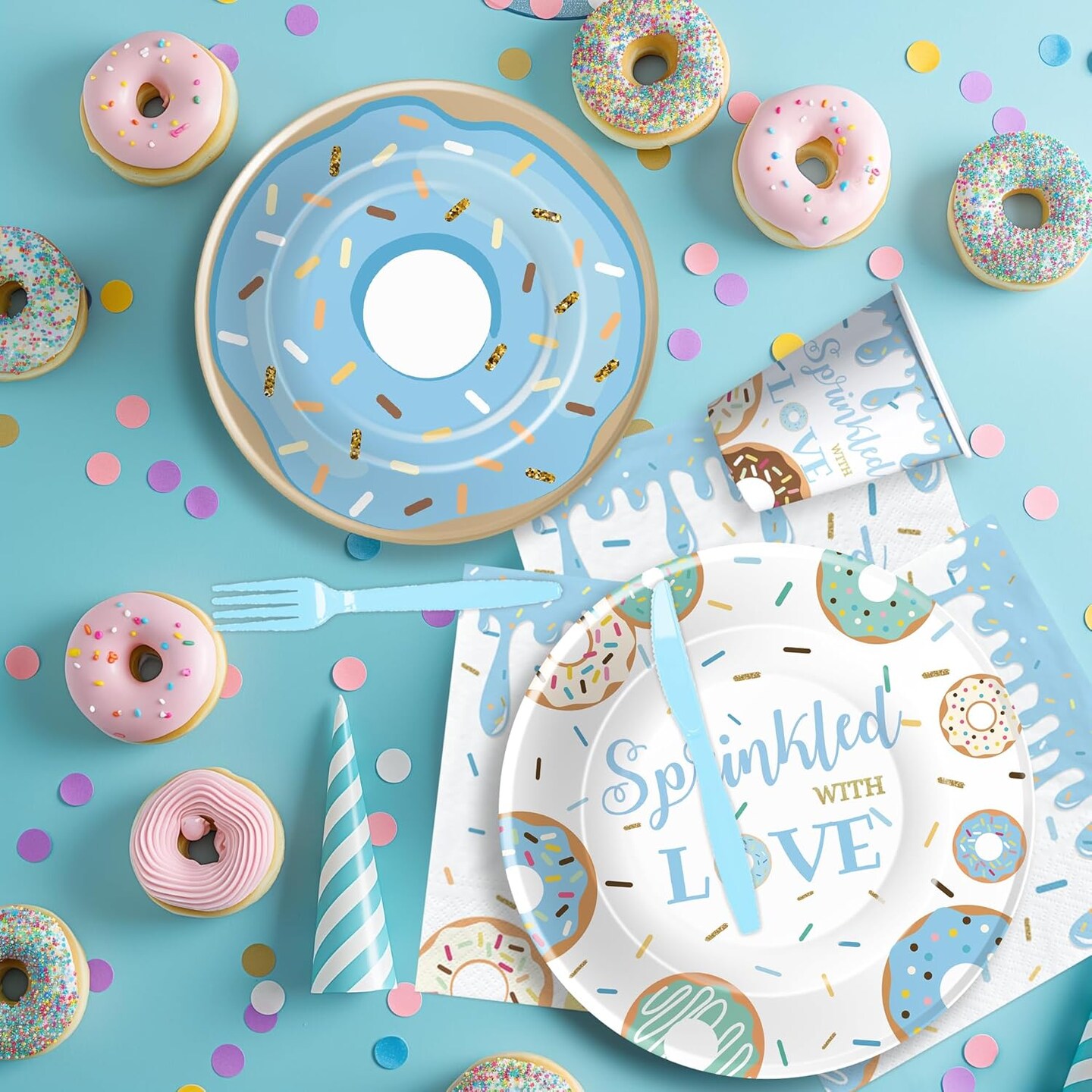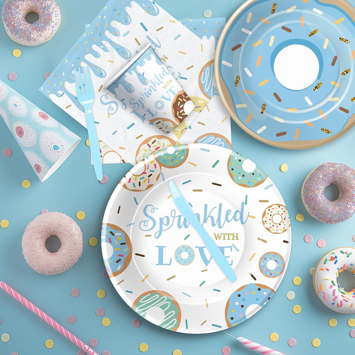 Blue Donut Baby Shower Sprinkle Tableware Set – Serves 24 Guests
