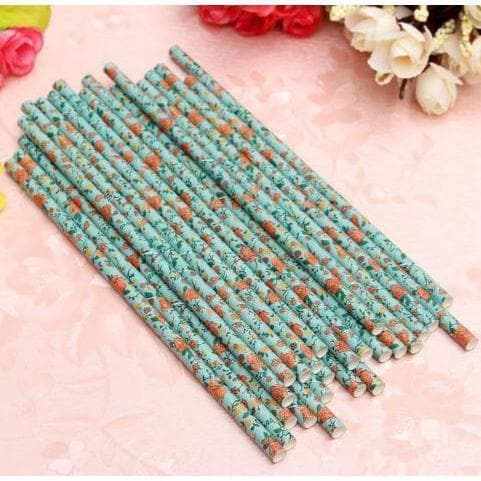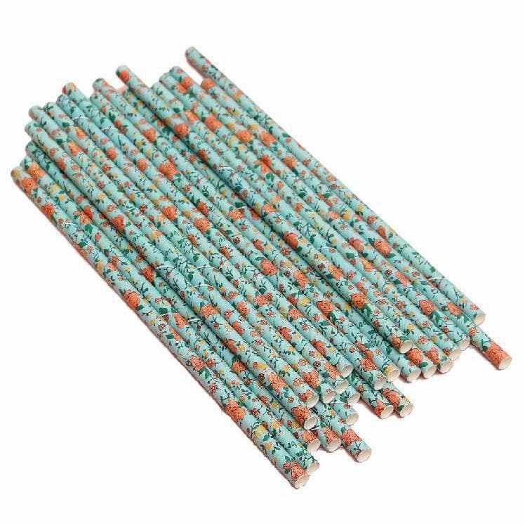 Blue Floral Cake Pop Party Straws