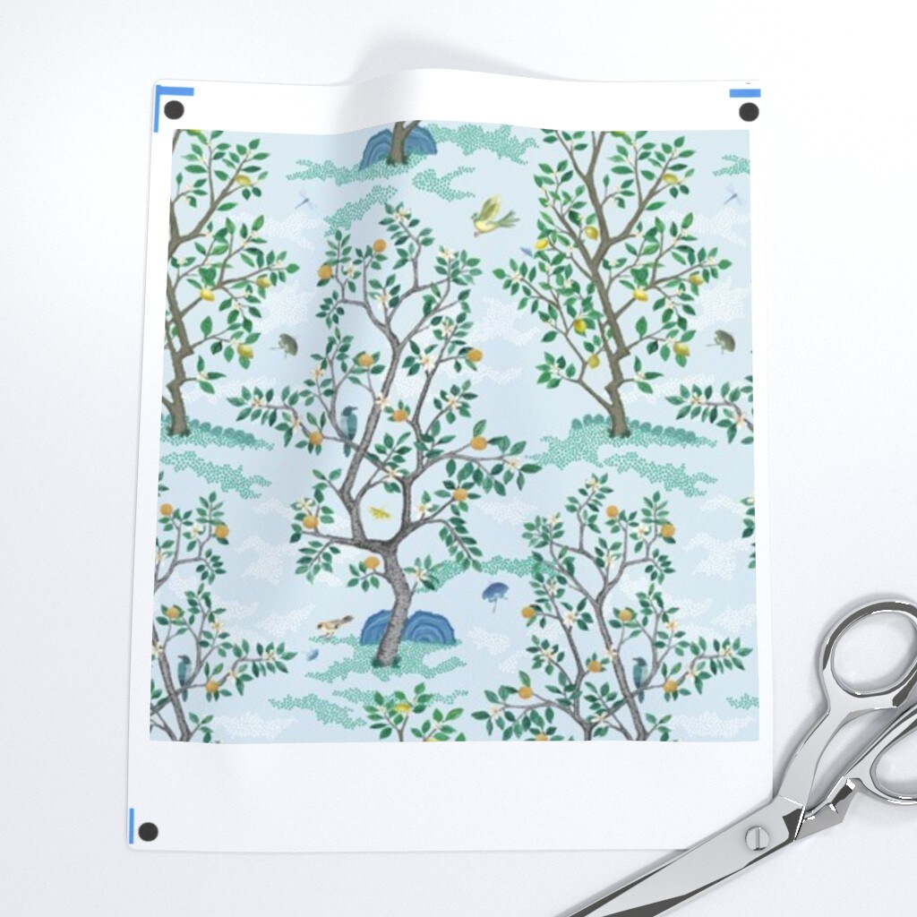 Blue Floral Citrus Tree Botanical Toile Fruit Grove Woodland Farm Lemon Orange Lime Small Scale Custom Removable Wallpaper by Spoonflower Peel & Stick Wallpaper 2FT Wide