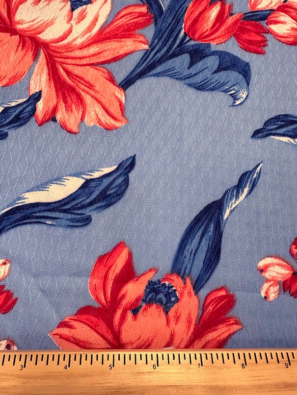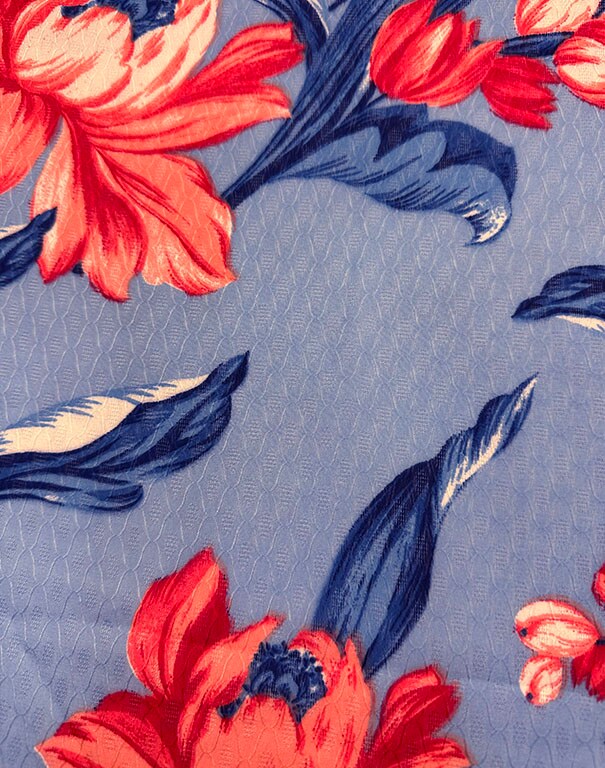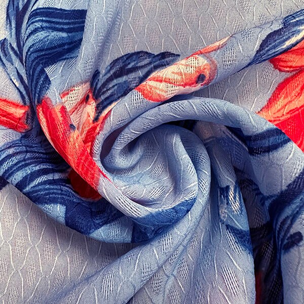 Blue Floral Print Jacquard Chiffon Fabric By the Yard