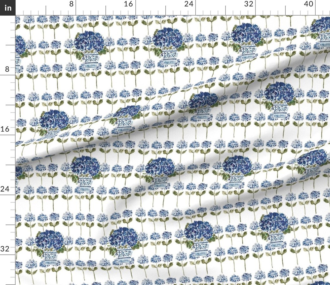 Blue French Country Garden Party Hydrangea Floral Chinoiserie Botanical Ginger Jar Watercolor Custom Printed Fabric by Spoonflower Various Fabrics by the Yard or Fat Quarter