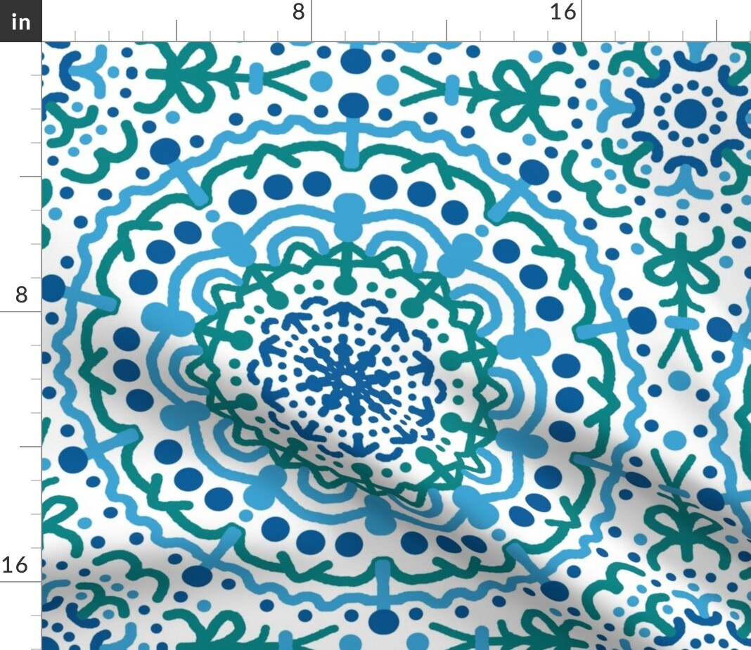 Blue Geometric Hippie Hand Drawn Mandala Bohemian Tapestry Boho Symmetric Large Scale Rosettes Circles Custom Printed Fabric by Spoonflower Various Fabrics by the Yard or Fat Quarter
