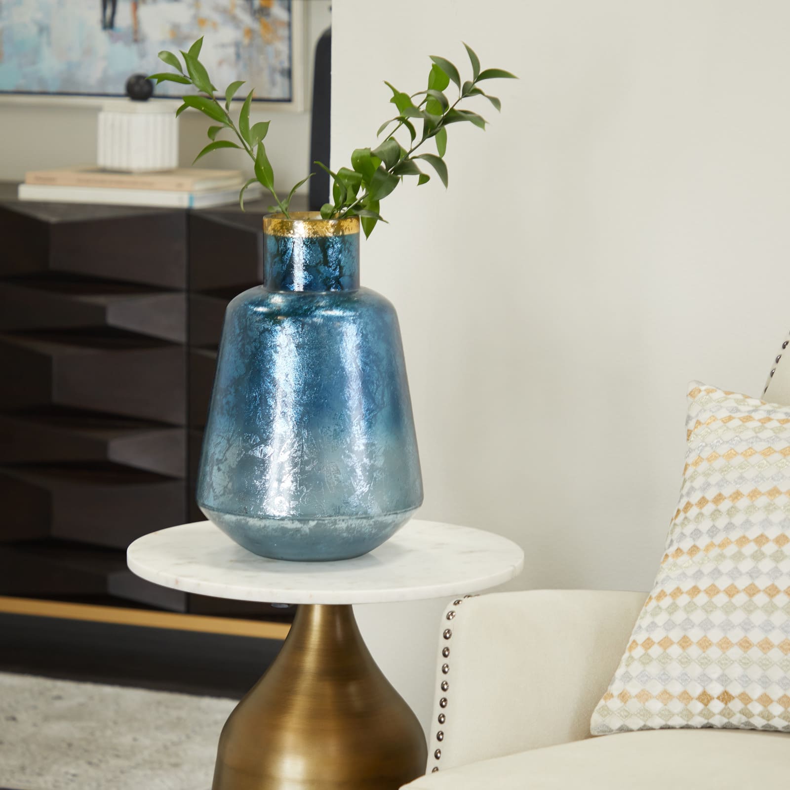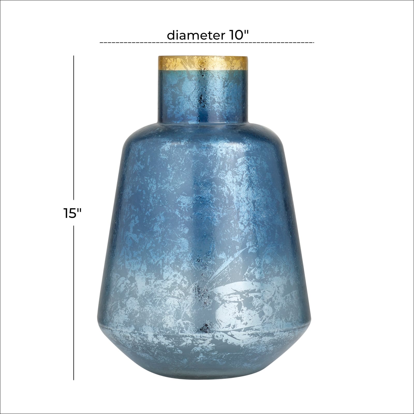 Blue Glass Coastal Vase, 14" x 10" x 10"