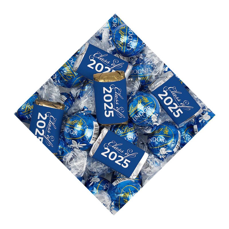 Blue Graduation Candy Party Favors Class of 2025 Hershey’s Miniatures & Truffles 77 Pcs