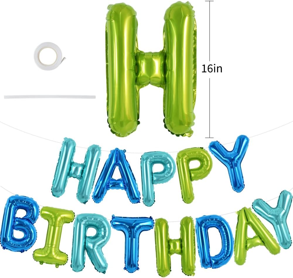 Blue Green Happy Birthday Balloons Banner 16 Inch Mylar Foil Letters Birthday Sign Bunting Reusable for Girls Boys Kids & Adults Birthday Decorations and Party Supplies