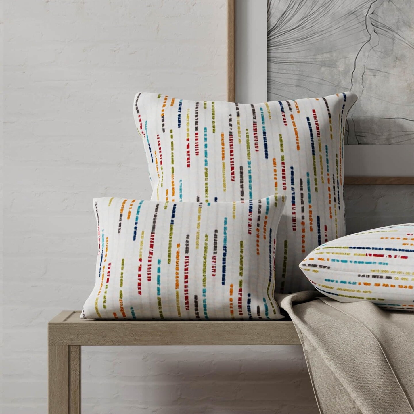 Blue Green Orange Abstract Woven Pattern Upholstery Fabric by The Yard - SKU: Natasha Confetti