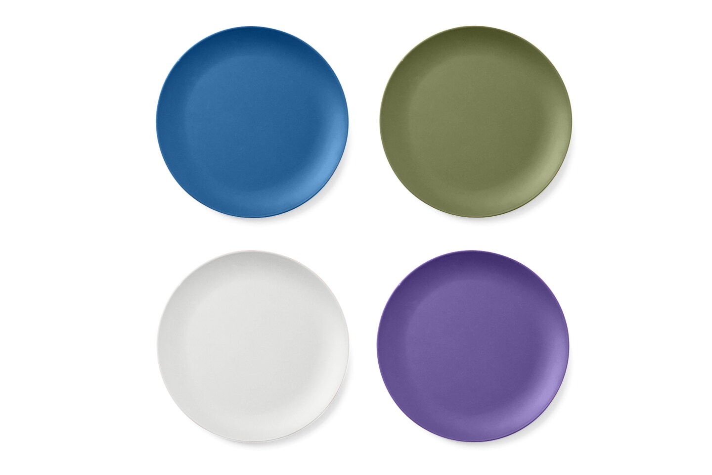 Blue, Green, Pink, White Bamboo Plates Set of 4