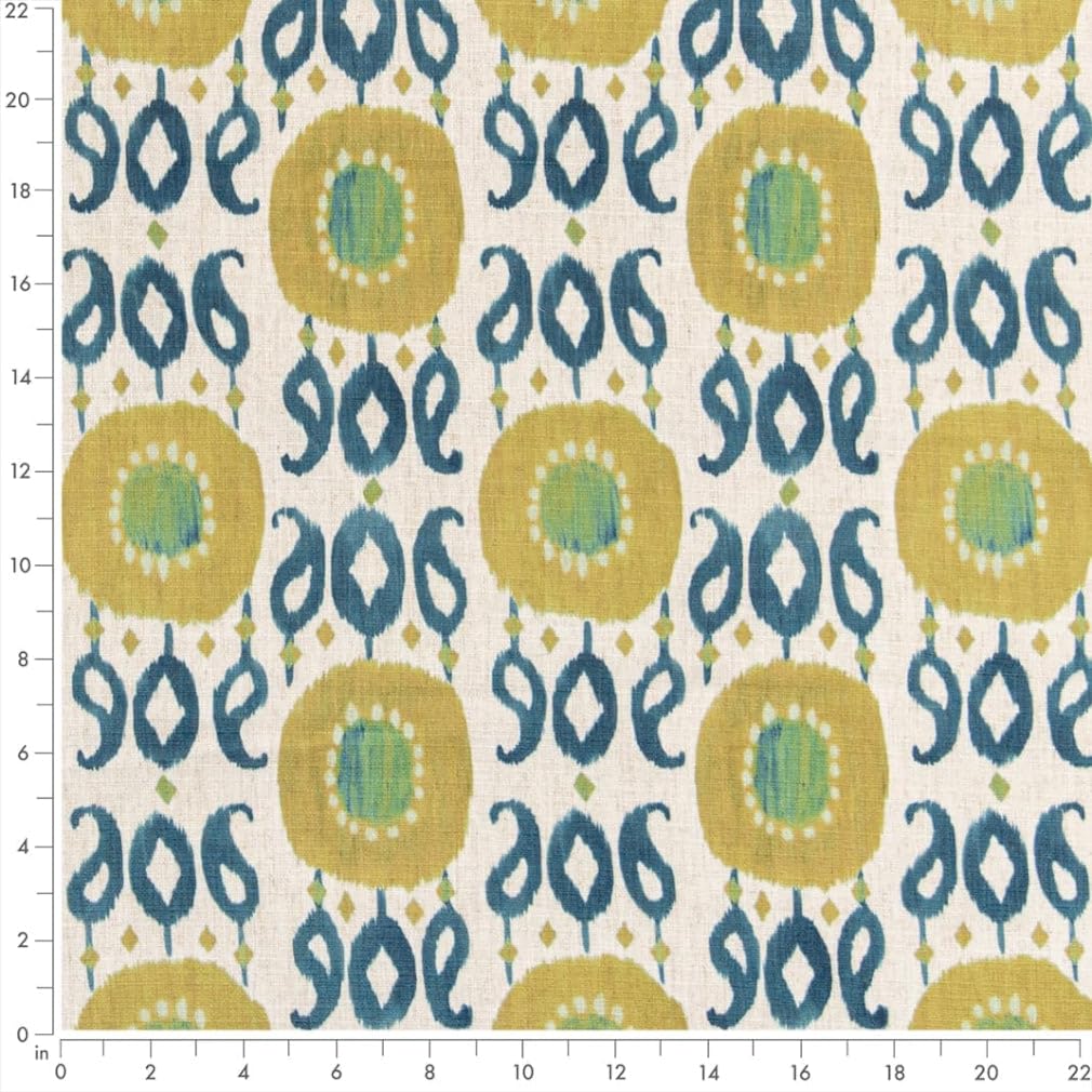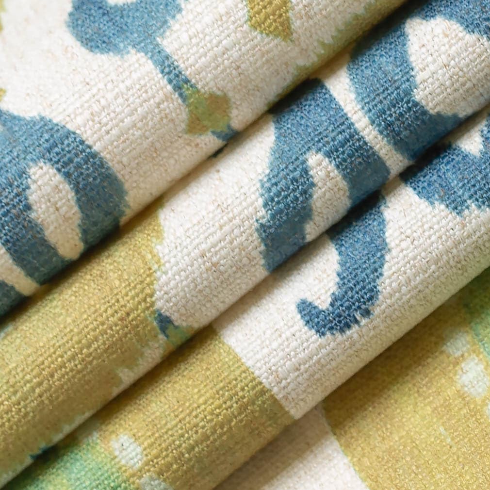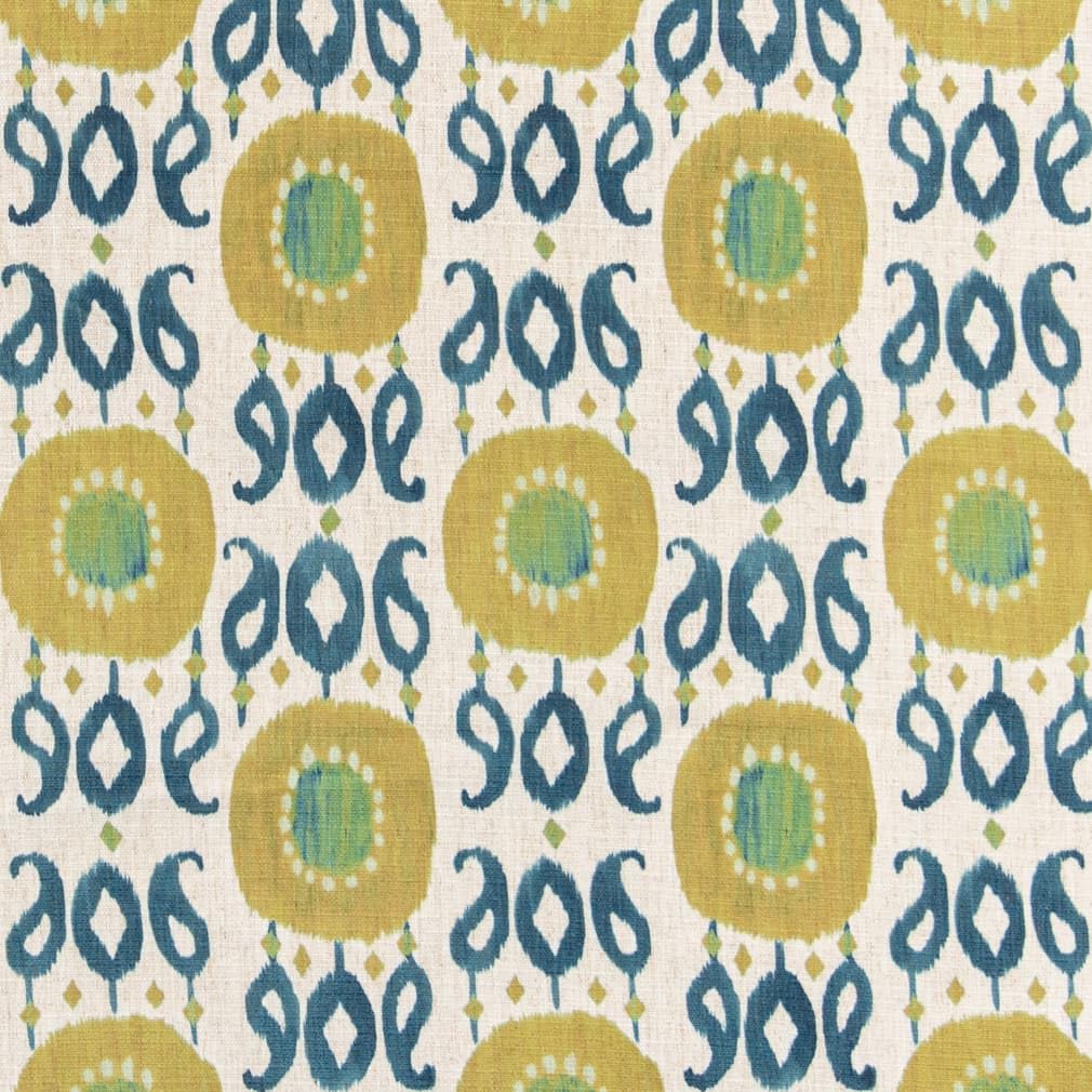 Blue Green Stain Resistant Performance Abstract Global Print Upholstery Fabric by The Yard - SKU: Elantra Citron