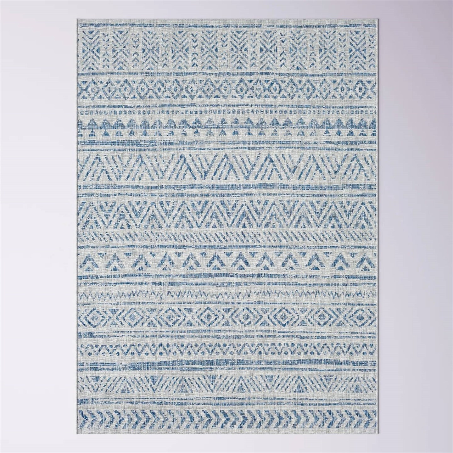 Blue Grey Chevron Rug 5x7.5 ft Indoor Outdoor Boho Coastal