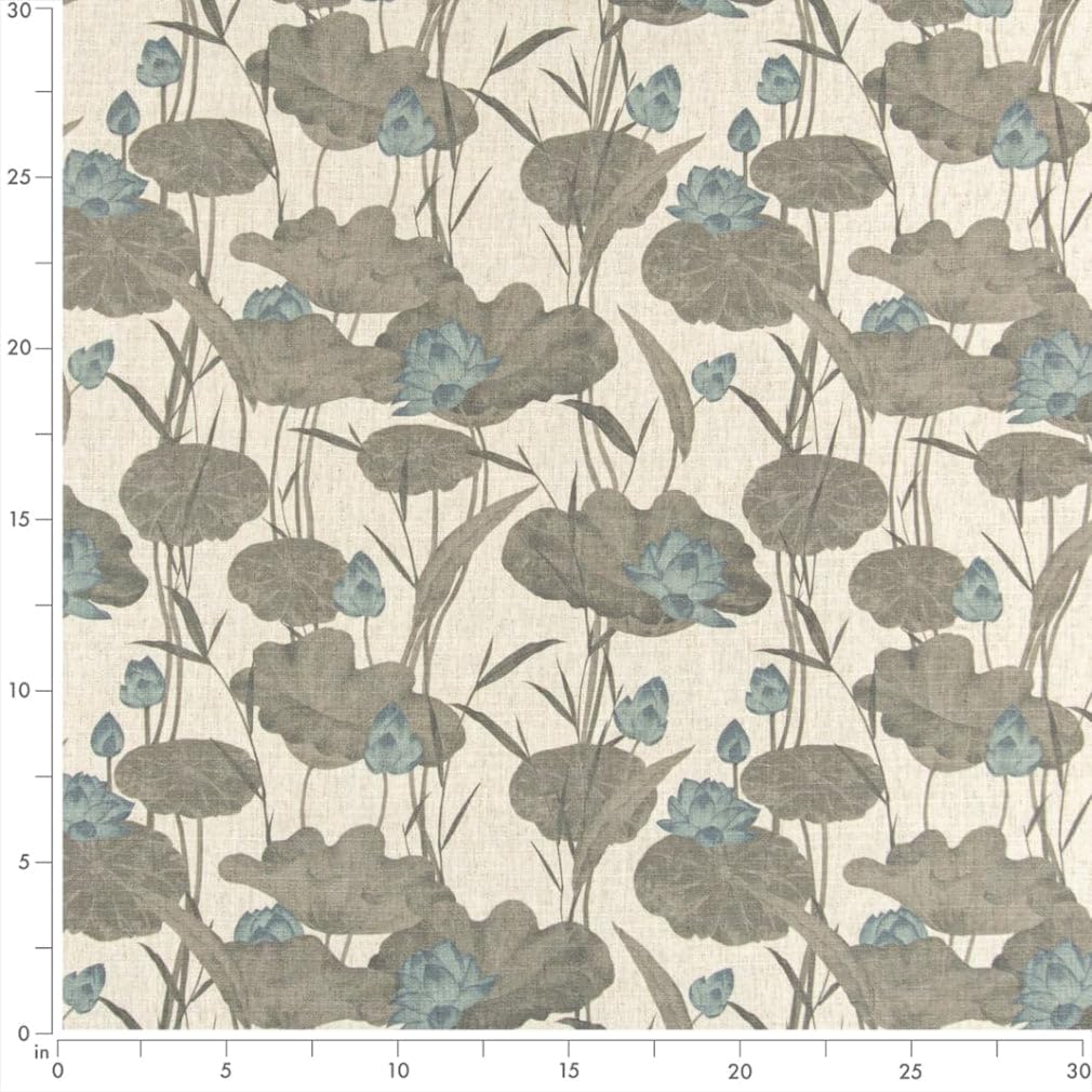 Blue Grey Stain Resistant Performance Floral Leaves Botanical Print Upholstery Fabric by The Yard - SKU: Lenox Storm