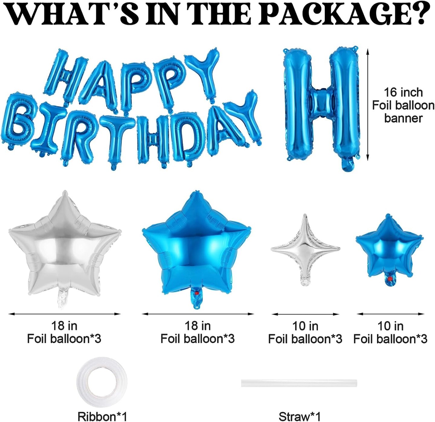 Blue Happy Birthday Banner Balloons Letters Balloons 16 Inch with 12 Pcs Star Foil Balloon Birthday Party Decorations