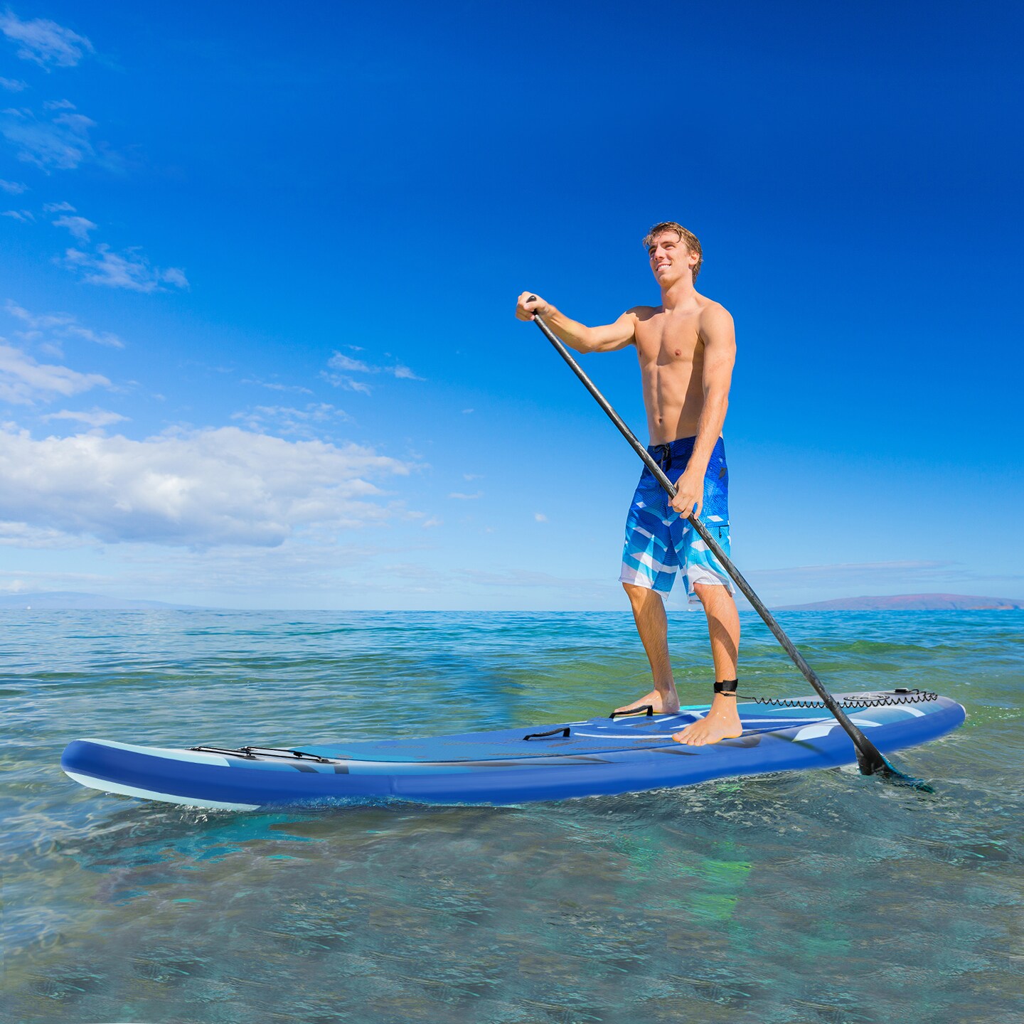 Blue Inflatable SUP Board Drop Stitch PVC EVA Aluminum Alloy Paddle Adjustable Length