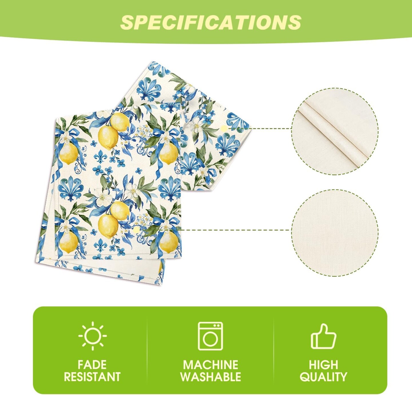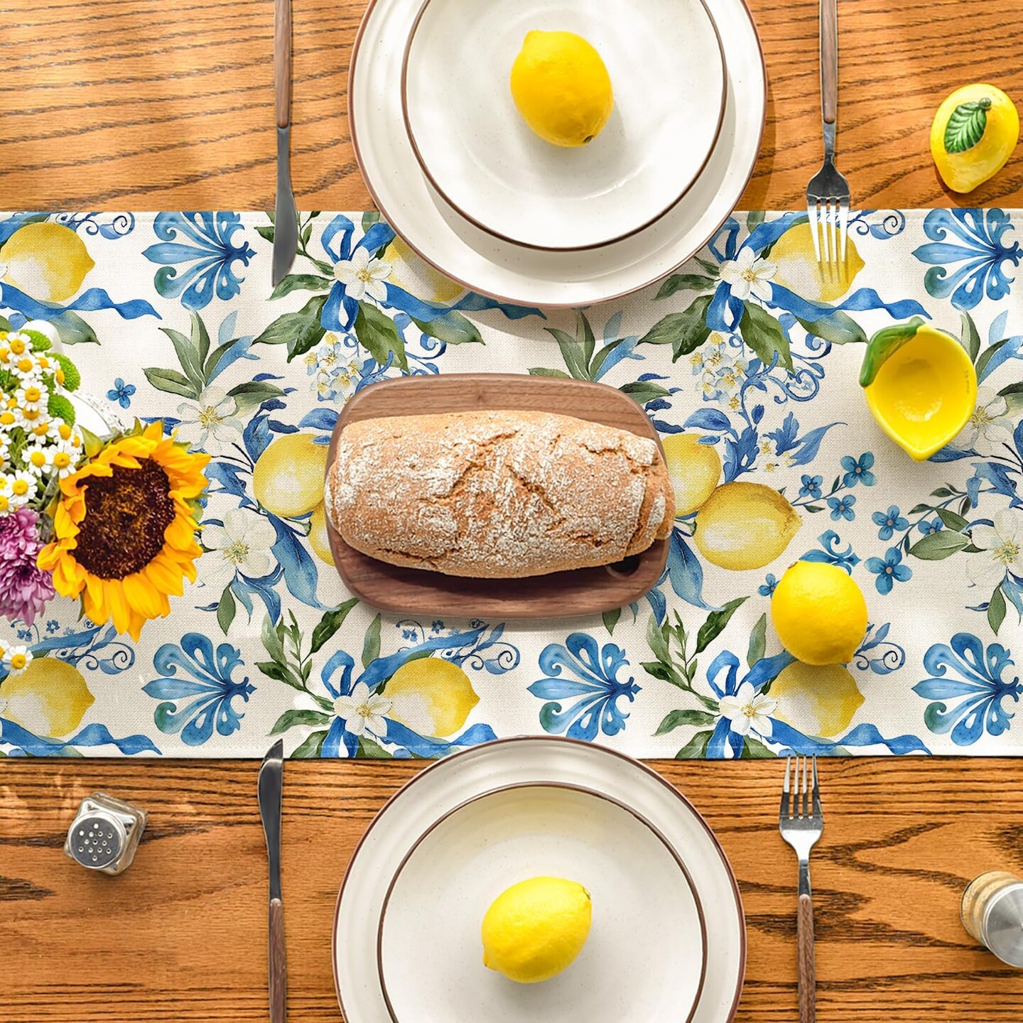 Blue Lemon Iris Summer Table Runner, Seasonal Spring Kitchen Dining Table Decor for Home Party Decor 13x72 Inch