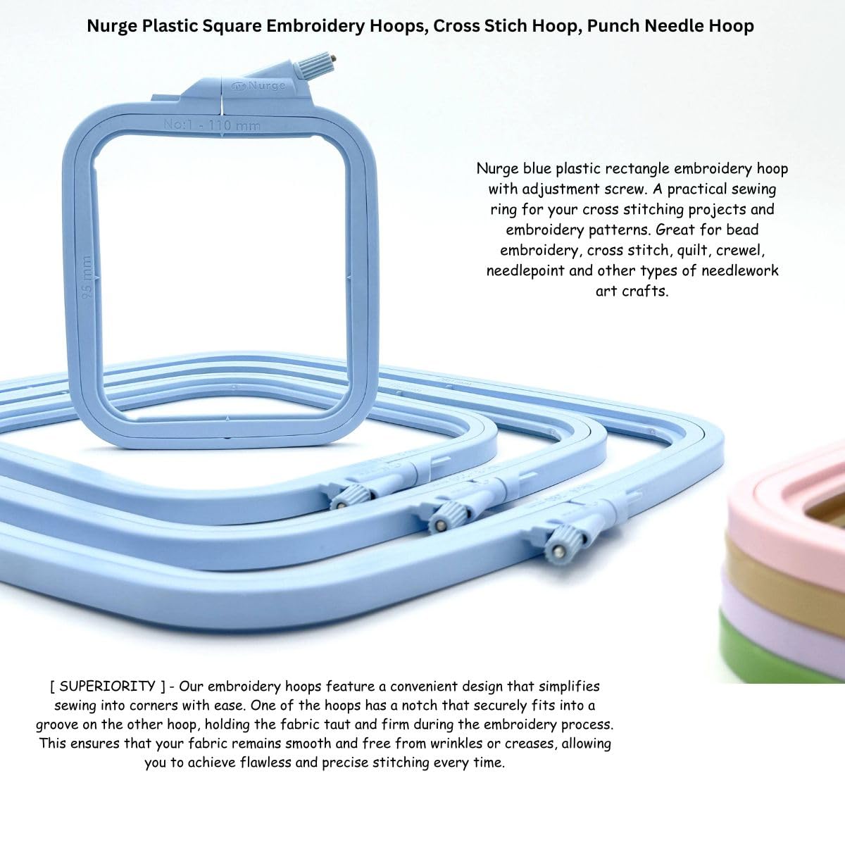 Blue Medium (No:3) Plastic Square Embroidery Hoop, Cross Stitch Hoops, Punch Needle Hoop , DIY Craft Sewing,ABS Plastic Embroidery Hoops