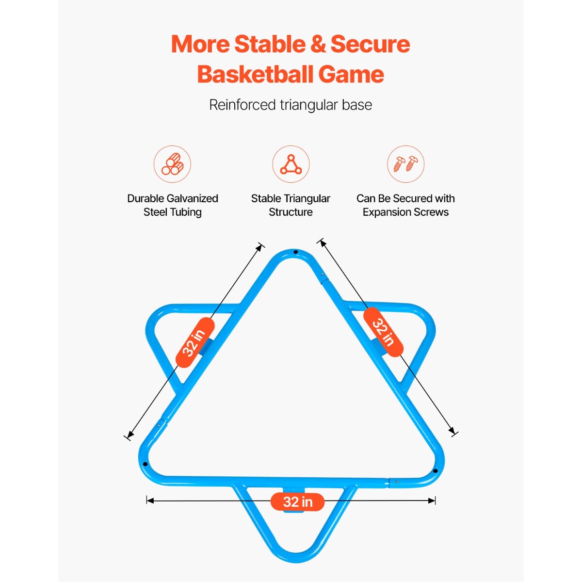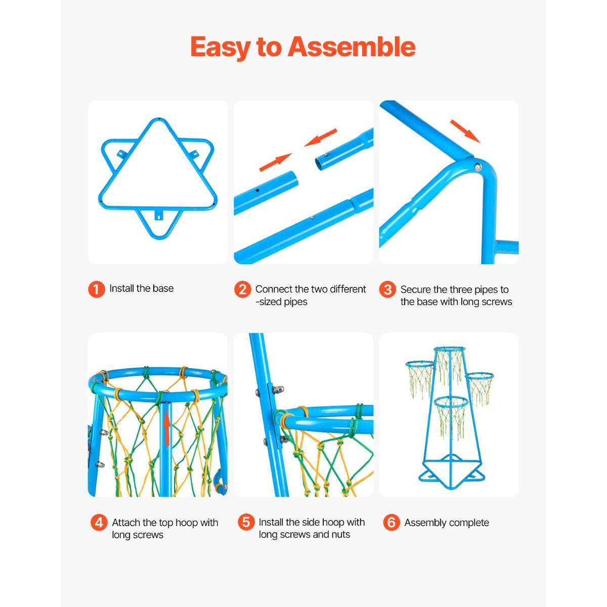 Blue Metal Kids Basketball Hoop with 4 Heights and Triangular Base