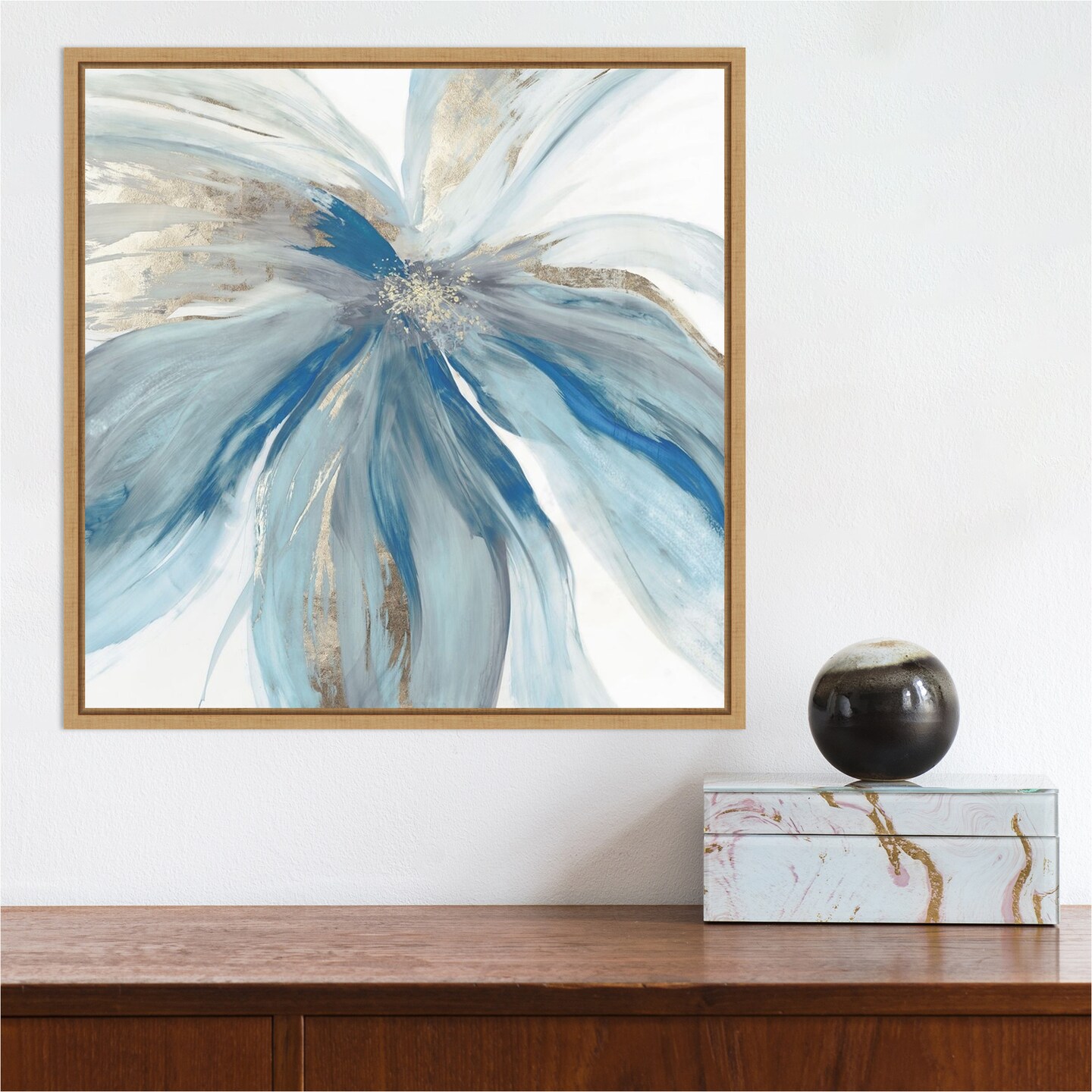 Blue Monarch I (Flower) by Asia Jensen 16-in. W x 16-in. H. Canvas Wall Art Print Framed in Natural