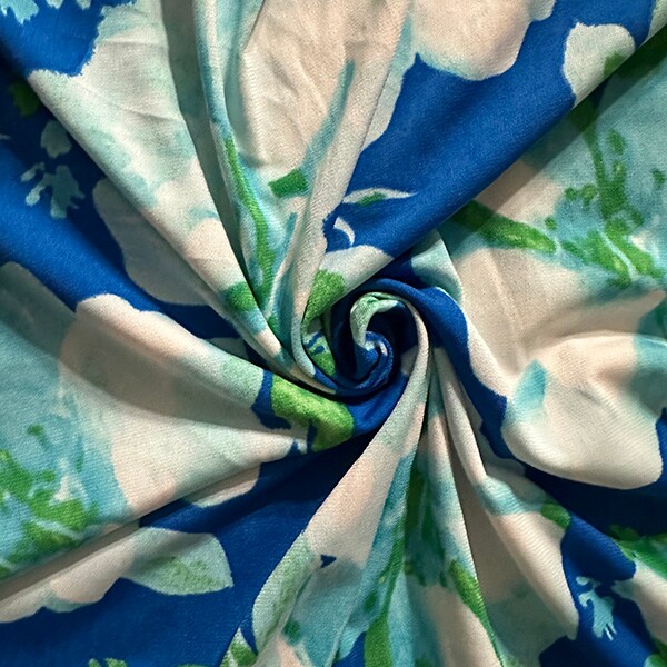 Blue Multi Floral Print ITY Jersey Knit Fabric By the Yard