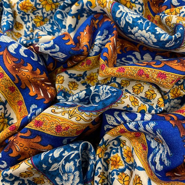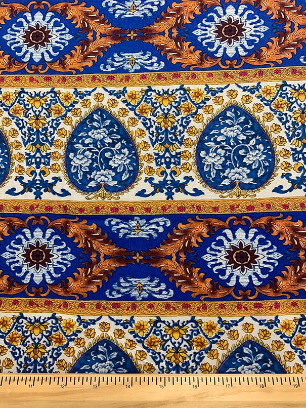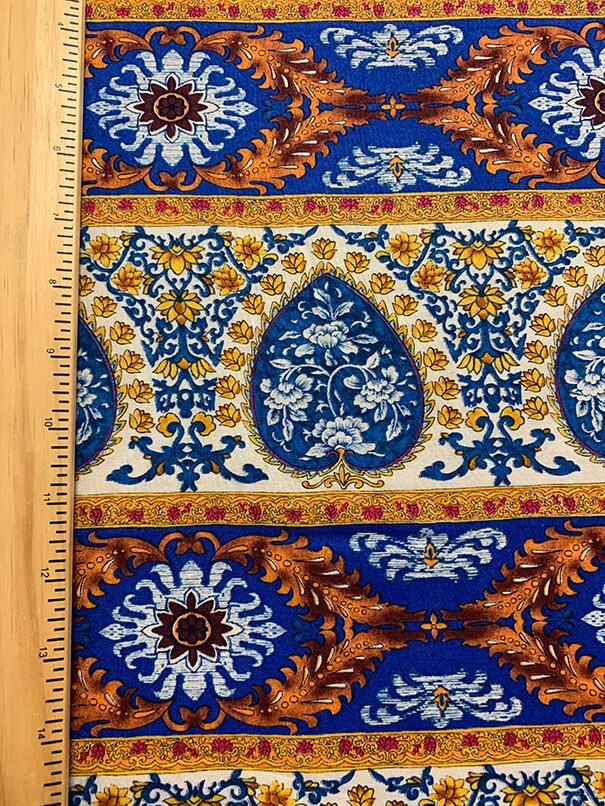 Blue Multi Stripe Print Rayon Challis Fabric By the Yard