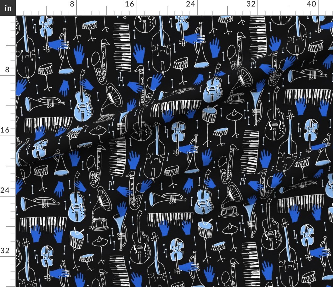 Blue Musical Jazz Music Blues Piano Trumpet American Bass Custom Printed Fabric by Spoonflower Various Fabrics by the Yard or Fat Quarter
