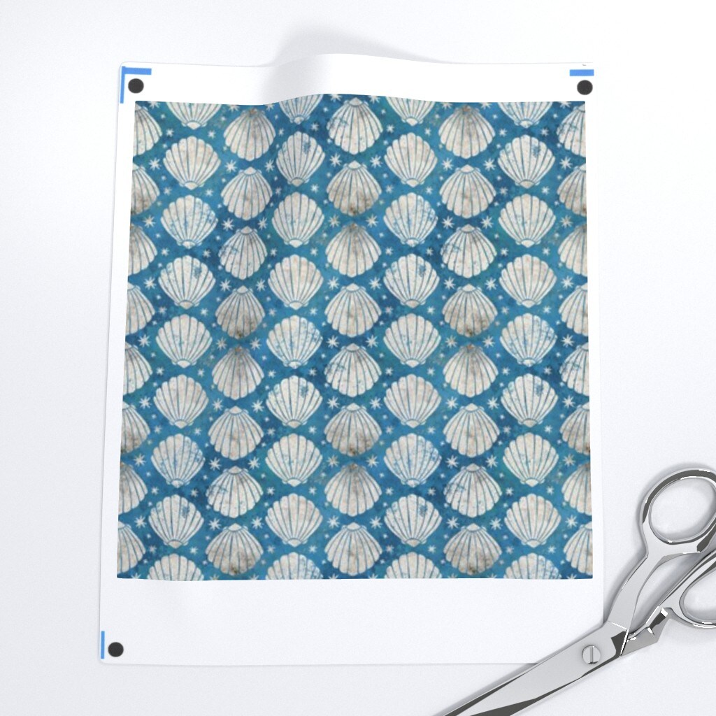 Blue Ocean Nautical Seashells Scallop Shell Coastal Small Scale Seafood Clams Stripes Custom Printed Fabric by Spoonflower Various Fabrics by the Yard or Fat Quarter