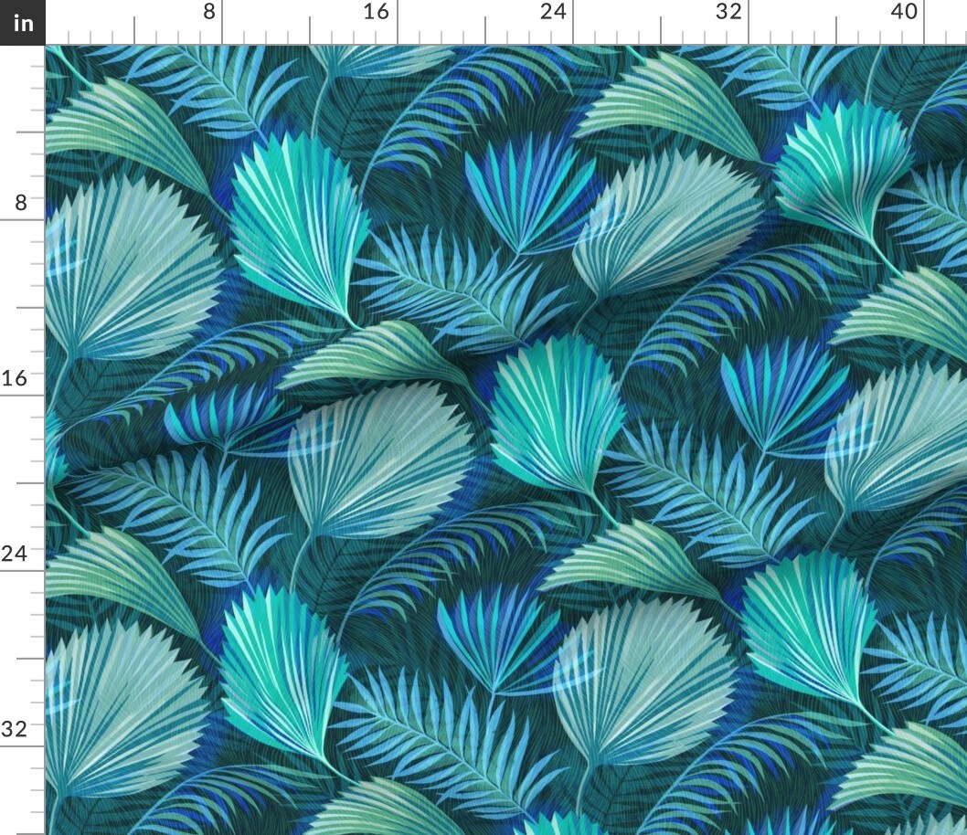 Blue Palm Tropical Foliage Rainforest Summer Electric Green Large Scale Custom Printed Fabric by Spoonflower Various Fabrics by the Yard or Fat Quarter