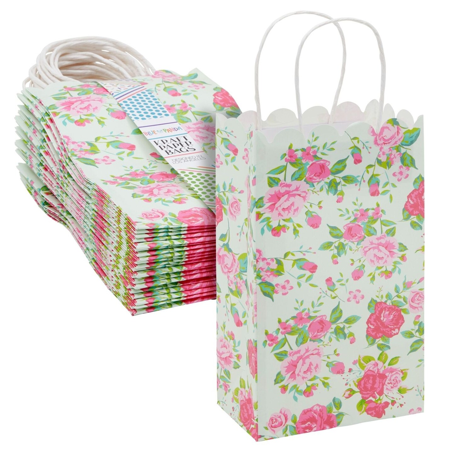 BLUE PANDA 24 Pack Small Floral Gift Bags with Handles, 5x8.5x3 Inches, Ideal for Mother's Day, Birthday, Weddings, Baby Shower, Themed Party Favors