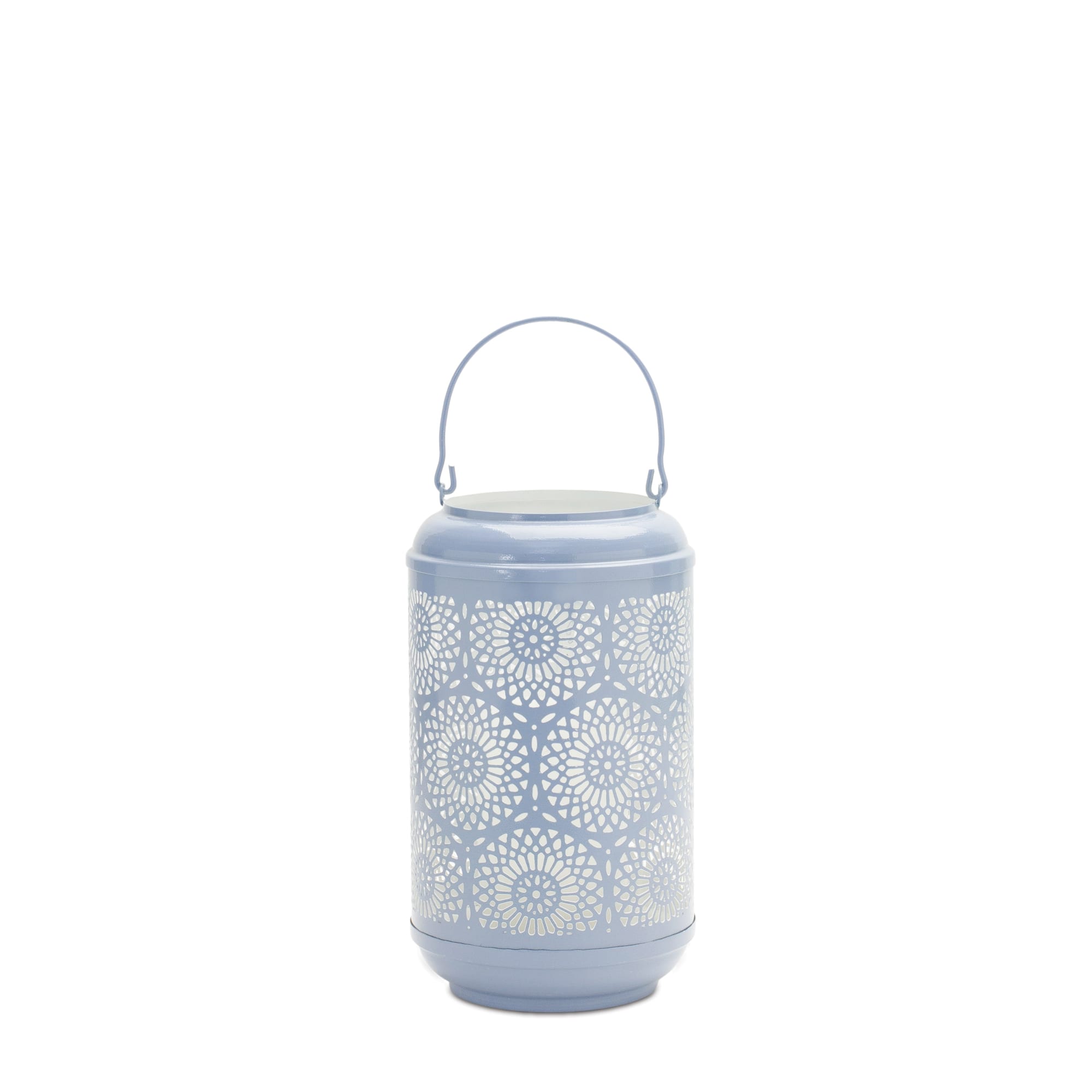 Blue Punched Metal Lantern Candle Holder Set, 11" & 13"