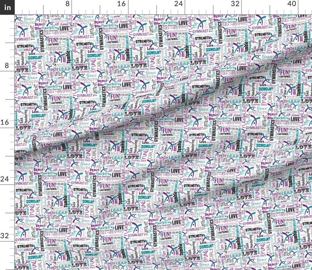 Blue, Purple, Gymnastics, Words, Teal, Sport, Gymnast, Athletic, Typography Custom Printed Fabric by Spoonflower Various Fabrics by the Yard or Fat Quarter