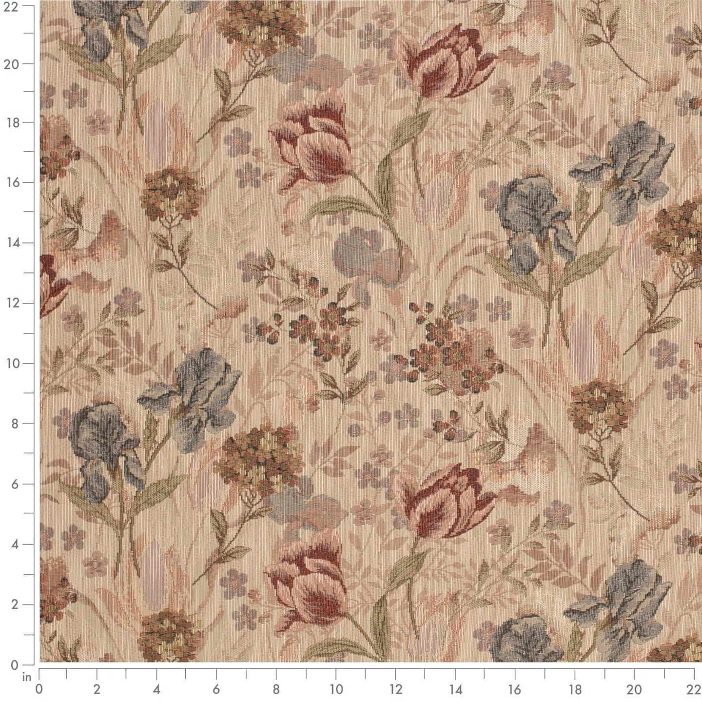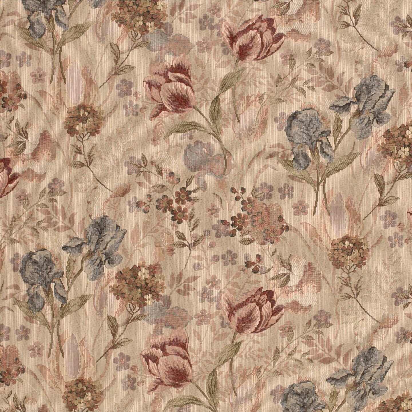 Blue Red Floral Tapestry Woven Pattern Upholstery Fabric by The Yard - SKU: Elizabeth Fawn