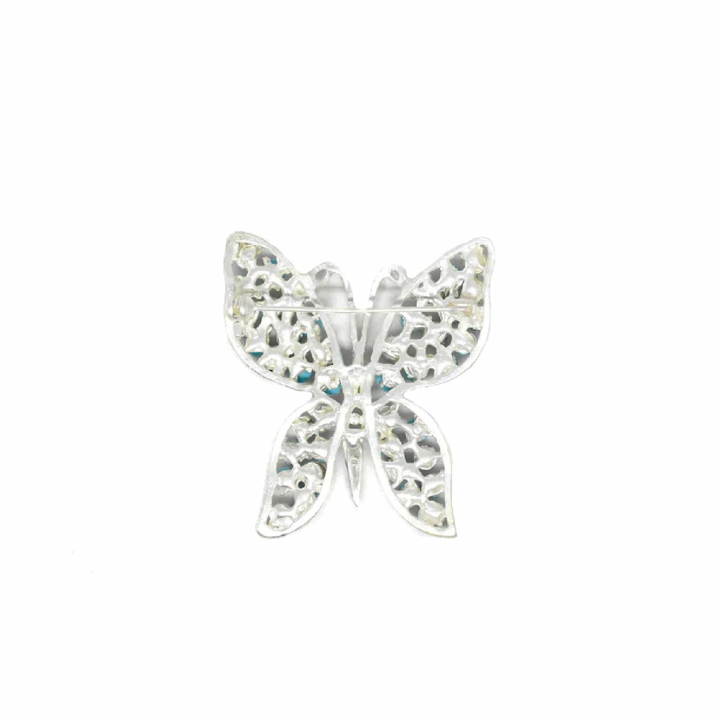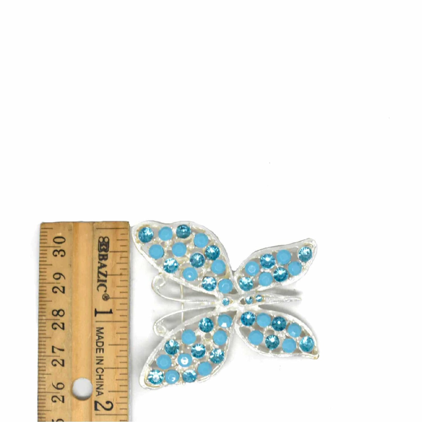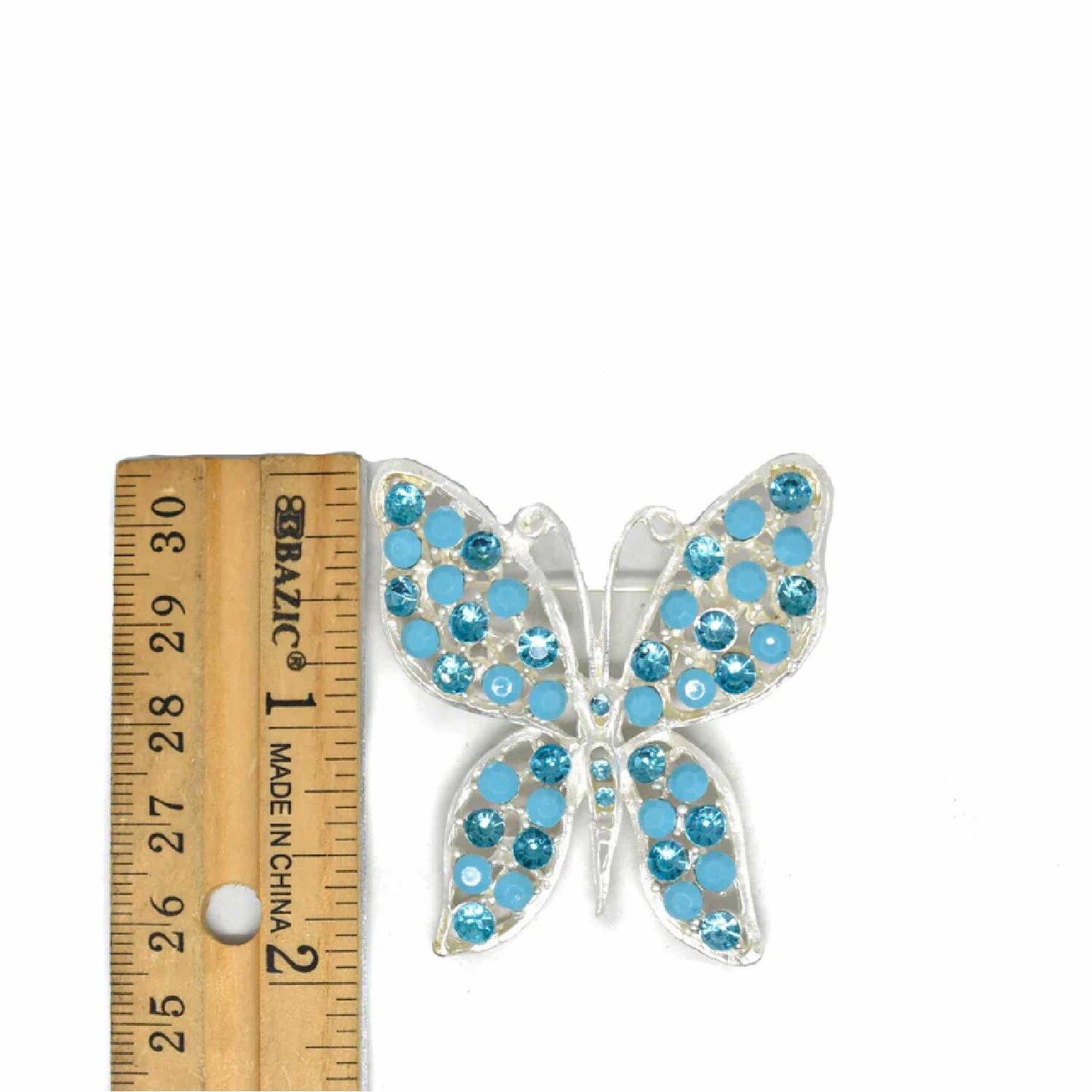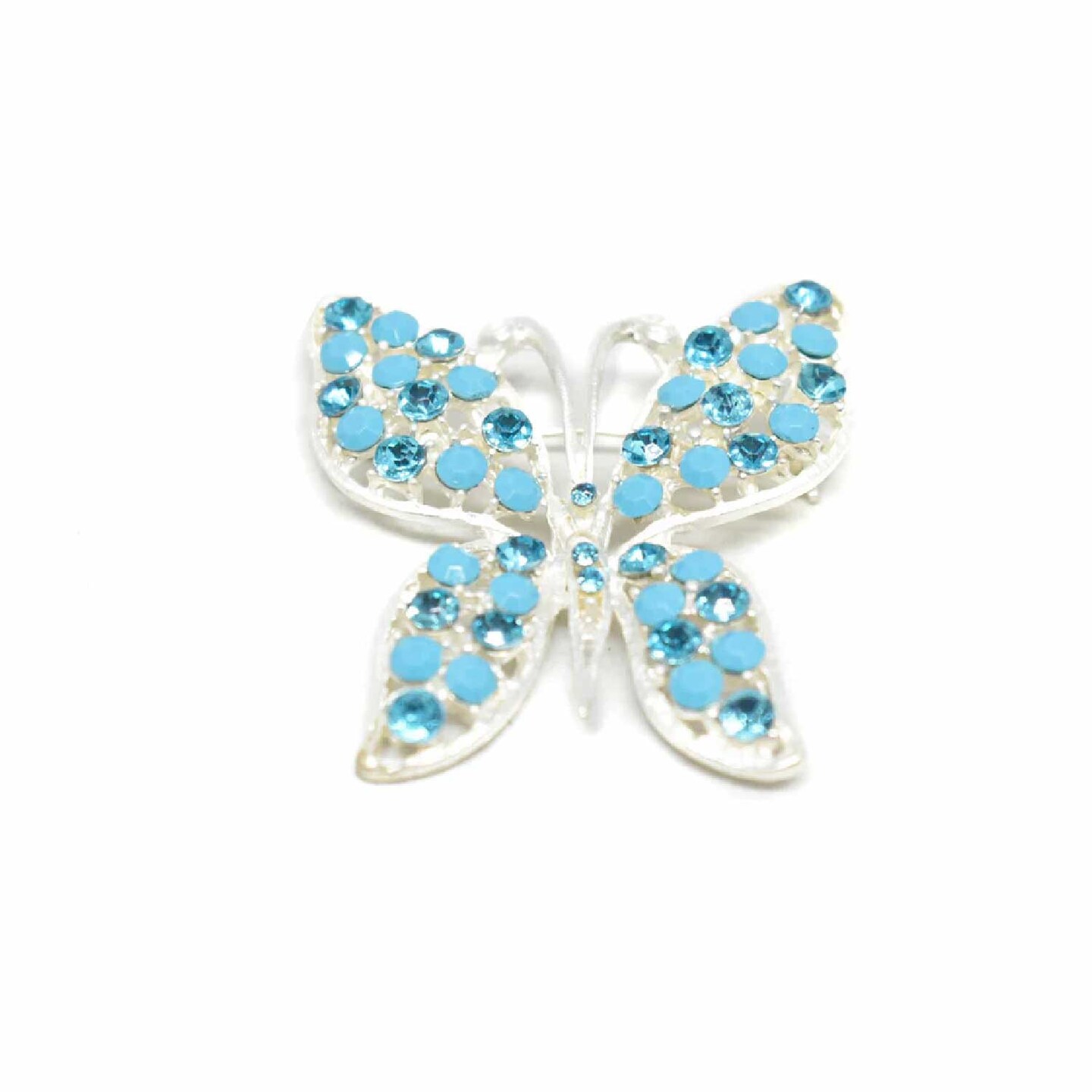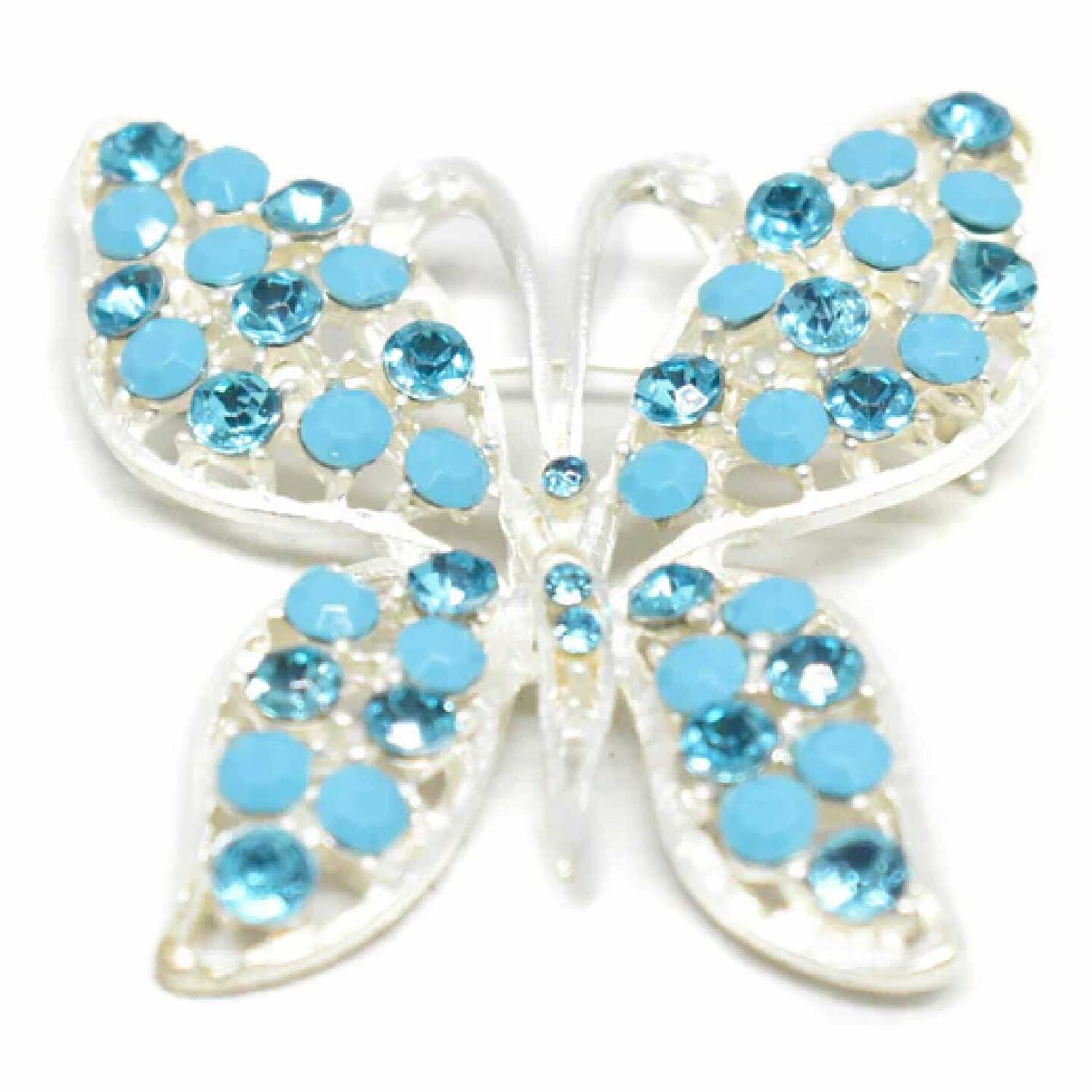 Blue Rhinestone Butterfly Brooch Pin Silver Accent For Costumes DIY 2 1/4 Inch X 1 3/4 Inch