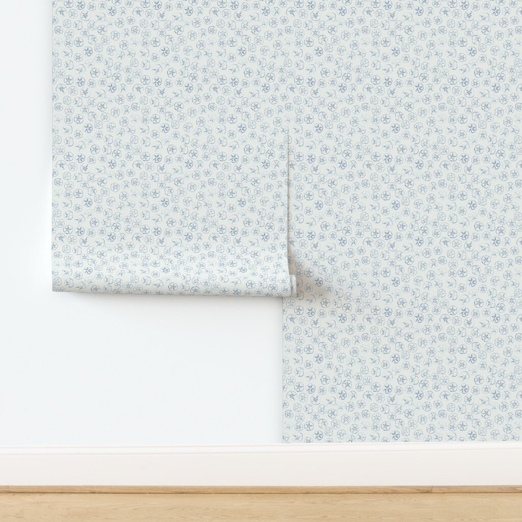 Blue Sand Dollar Coastal Nautical Neutral Calm Serene Minimal Simple Beach Ocean Seaside Custom Removable Wallpaper by Spoonflower Peel & Stick Wallpaper 2FT Wide