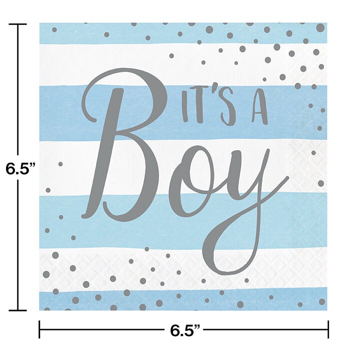 Blue Silver Celebration "It's a Boy" Luncheon Napkin (16/Pkg)