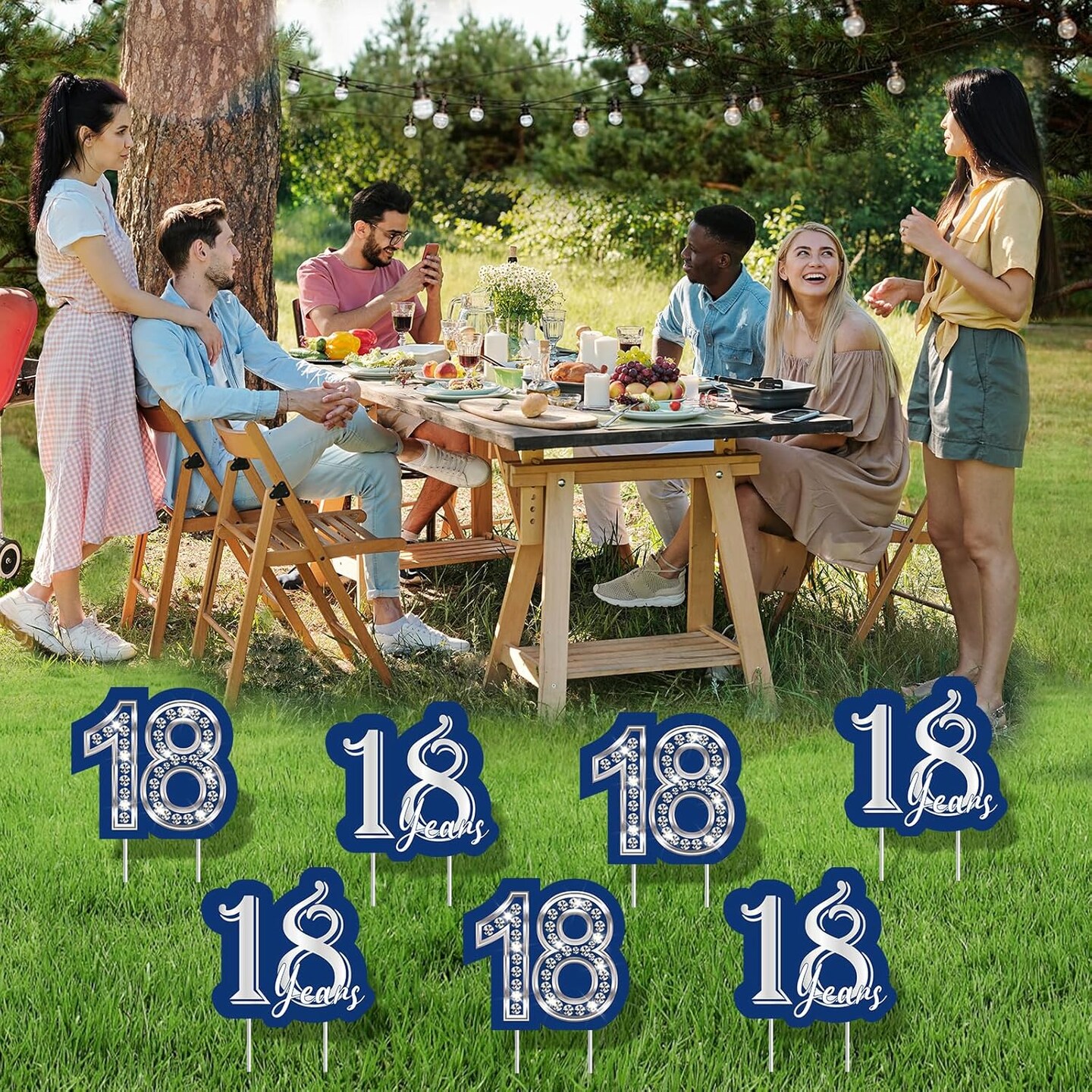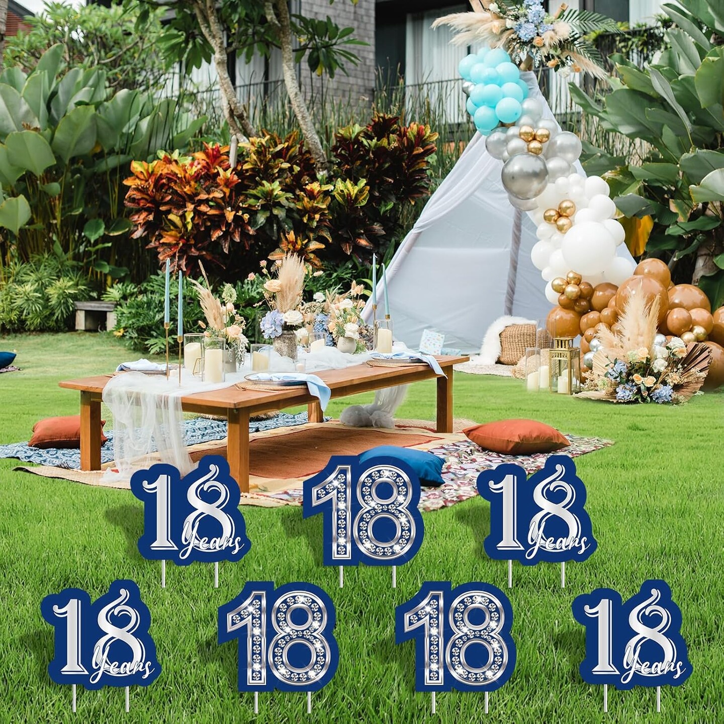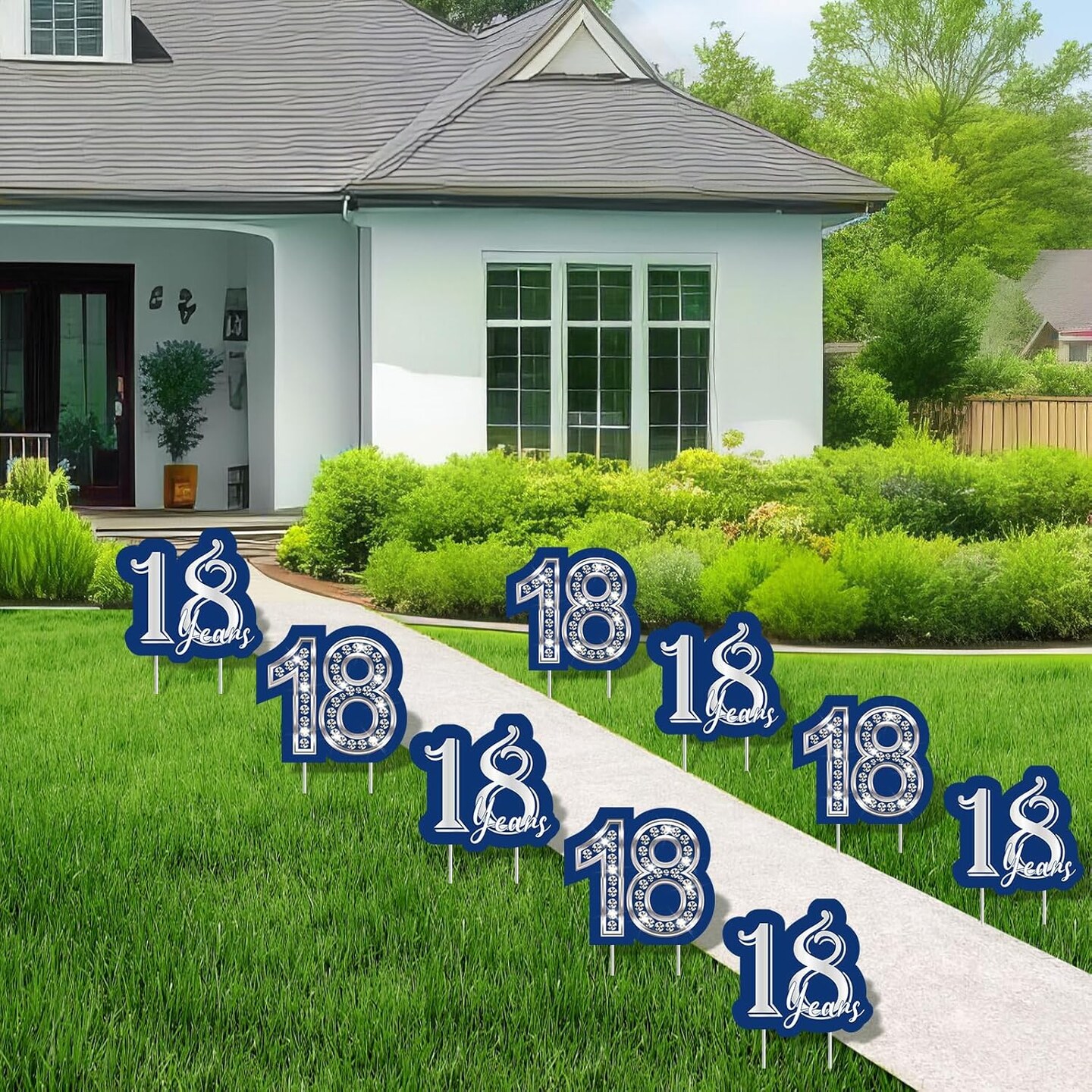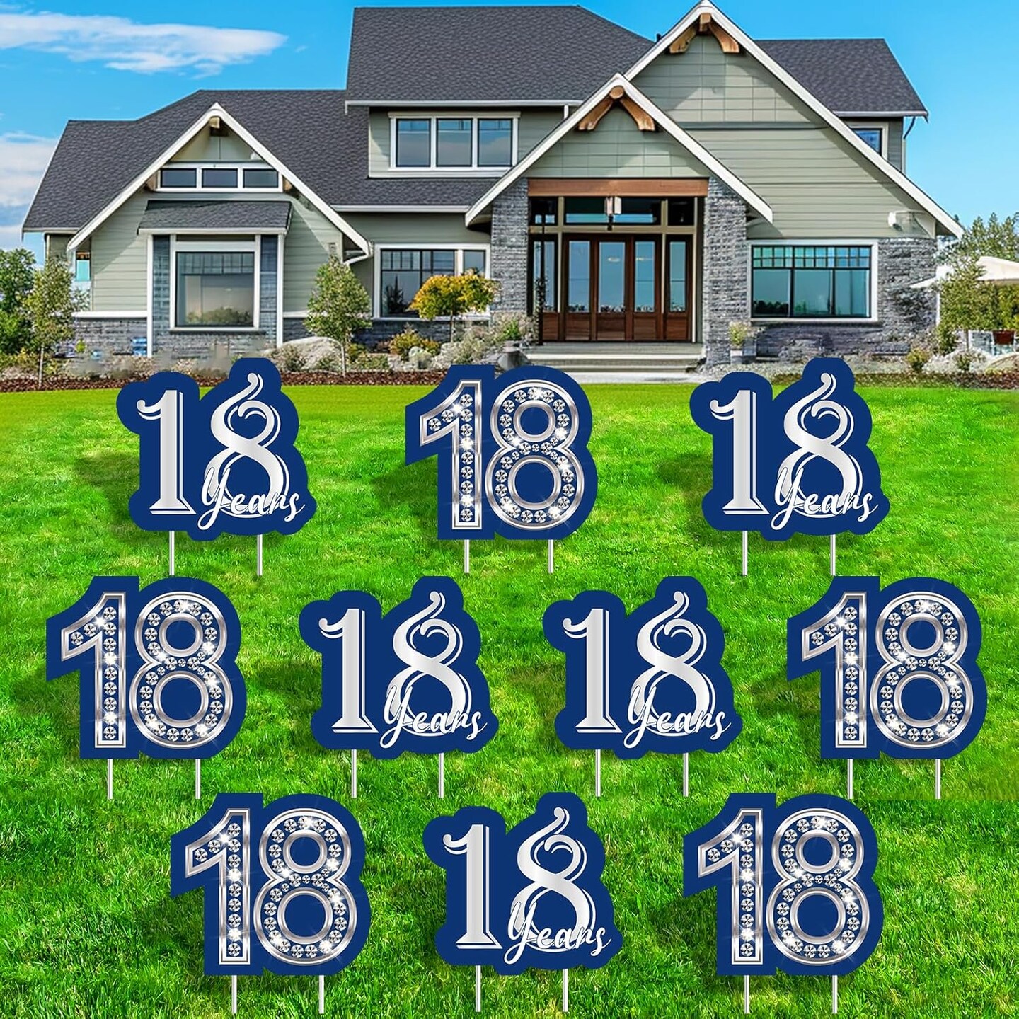 Blue Sliver 18th Birthday Yard Sign for Boys Girls 10PCS Happy 18th Birthday Party Decorations 2006 Lawn Sign with Stakes for 18 Years Old Birthday Outdoor Anniversary Decor Party Supplies