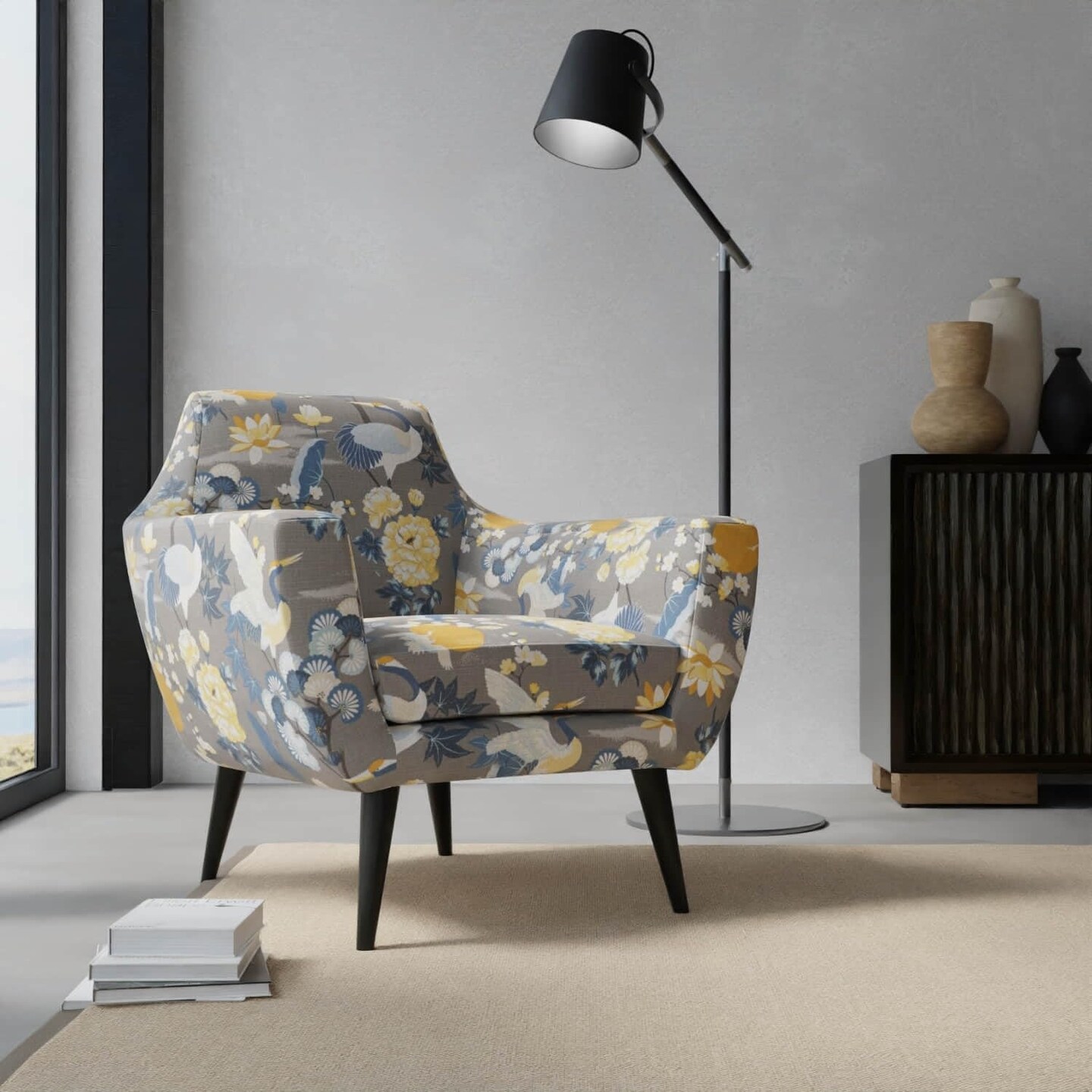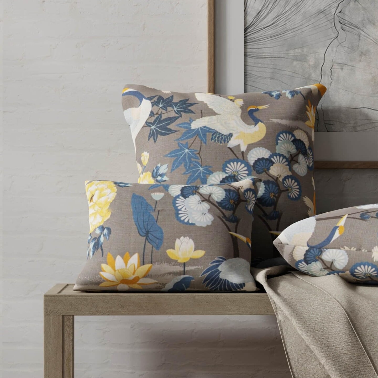 Blue Stain Resistant Performance Floral Novelty Botanical Print Upholstery Fabric by The Yard - SKU: Chopin Stone
