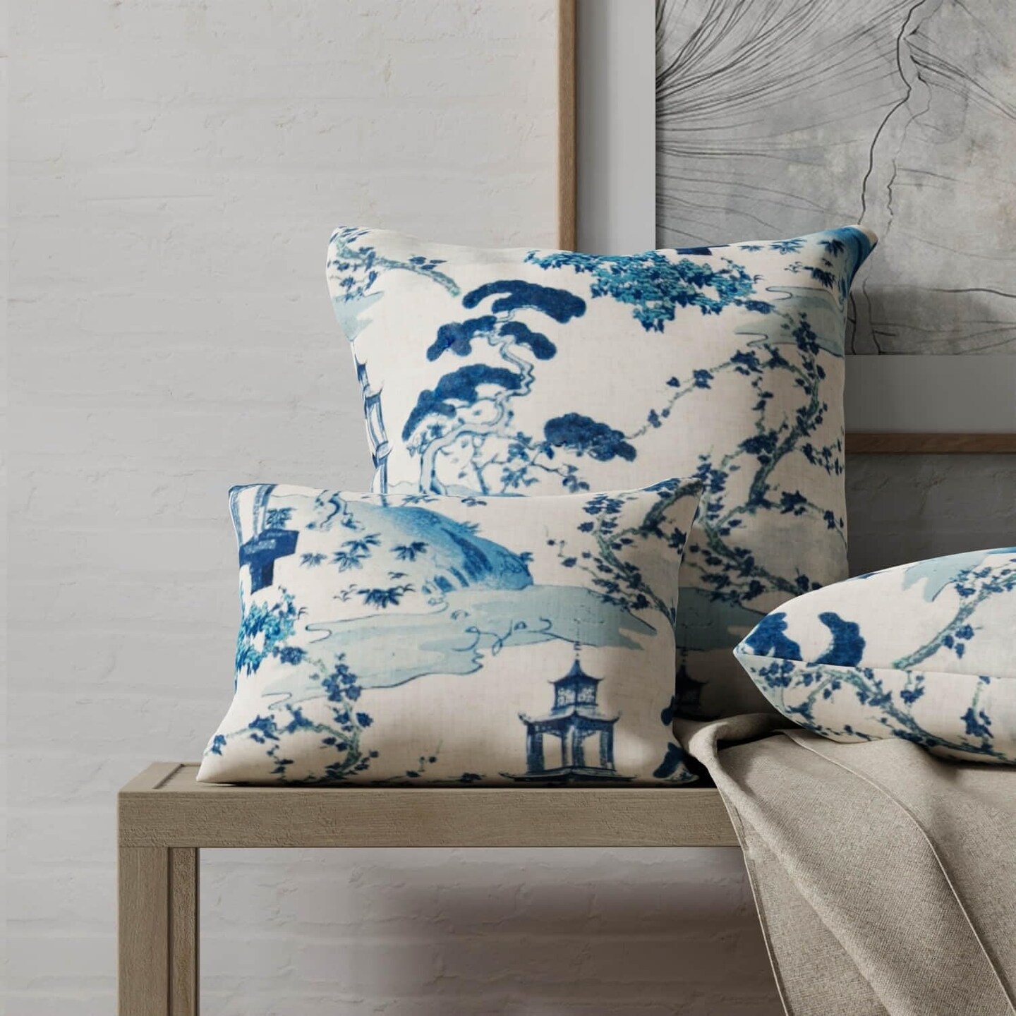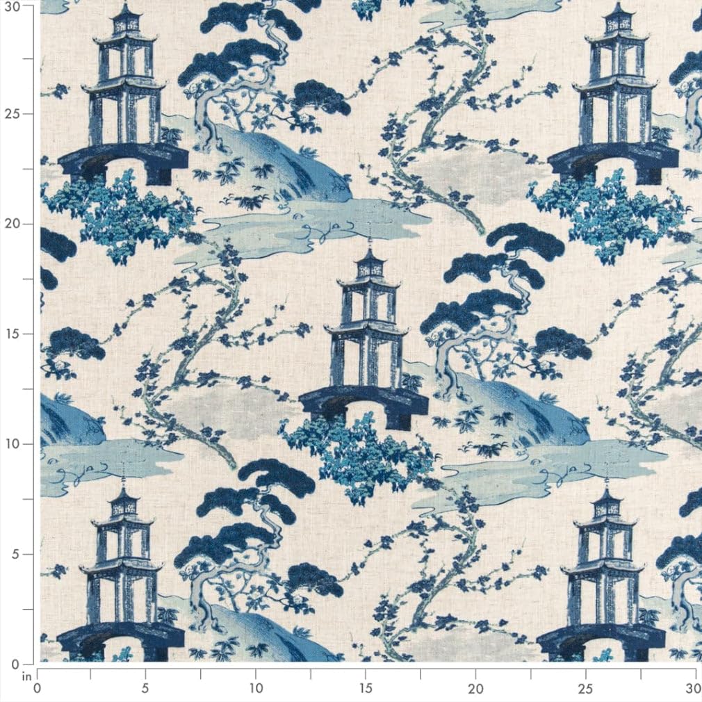 Blue Stain Resistant Performance Global Toile Novelty Print Upholstery Fabric by The Yard - SKU: Linford Sapphire
