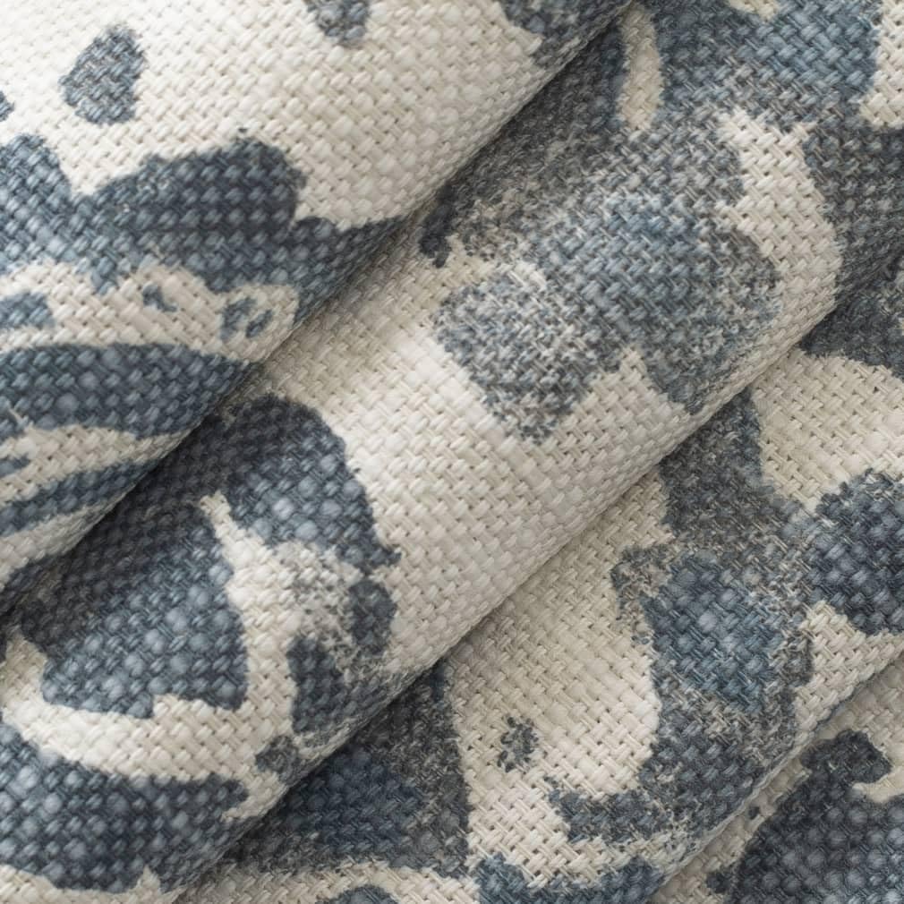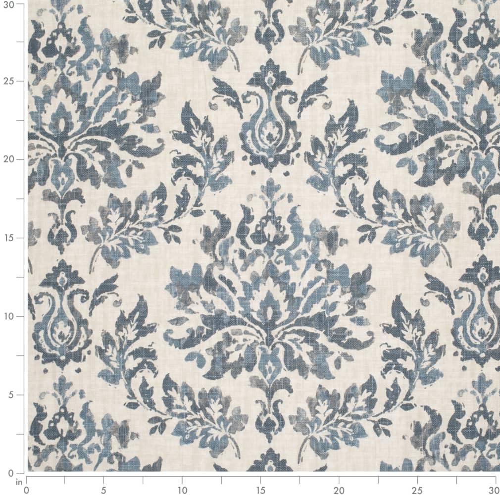 Blue Stain Resistant Performance Pet Friendly Damask Linen Look Print Upholstery Fabric by The Yard - SKU: Gary Azure