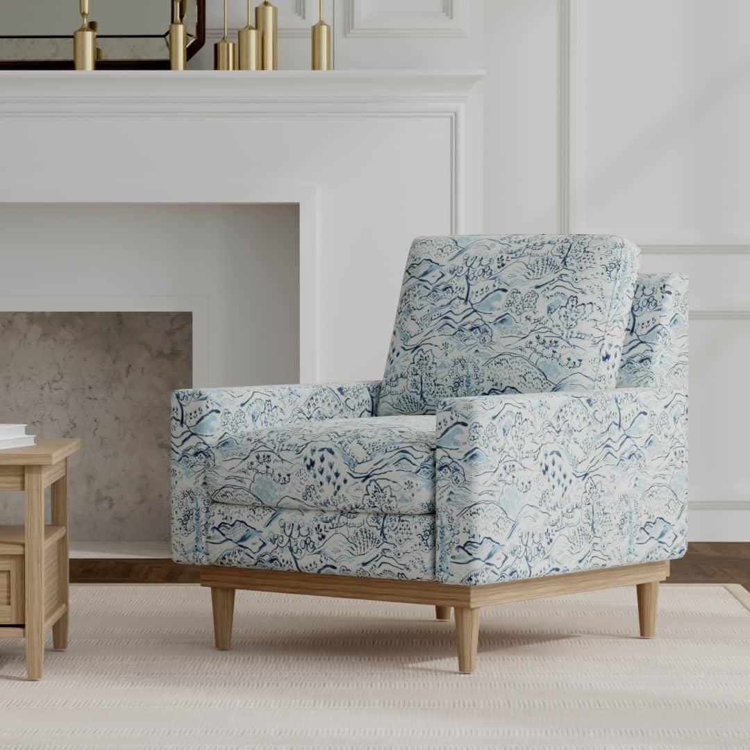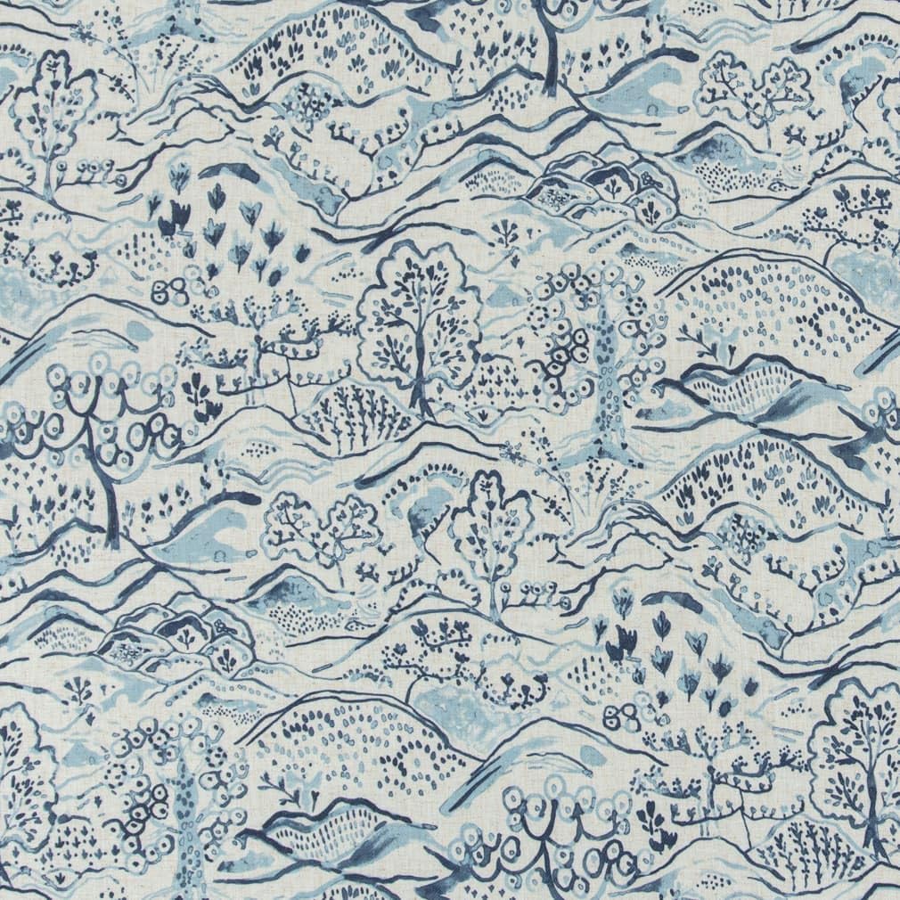Blue Stain Resistant Performance Toile Print Upholstery Fabric by The Yard - SKU: Grace Indigo