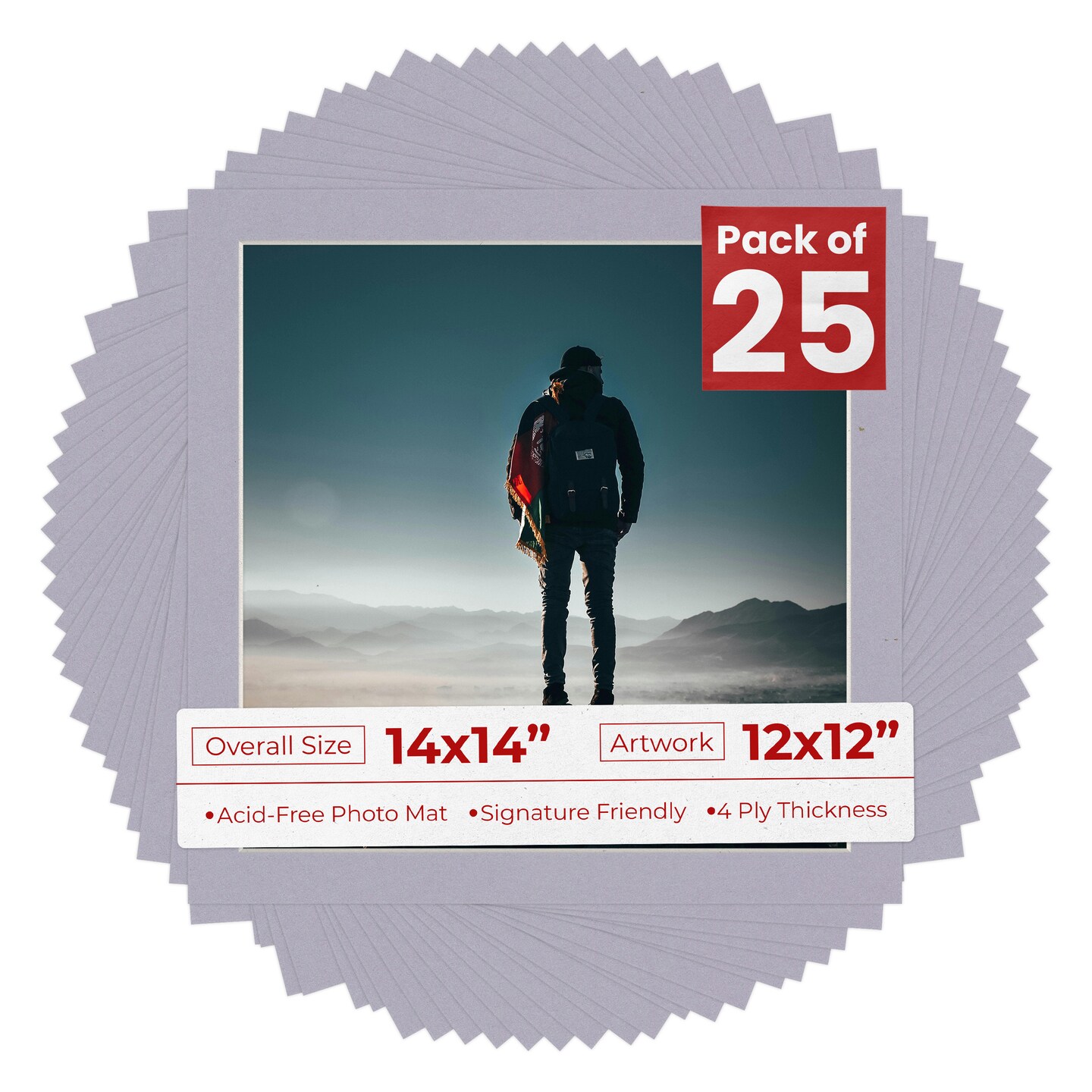 Blue Stone Mat Board for 14x14 Frames - Fits 12x12 Photos