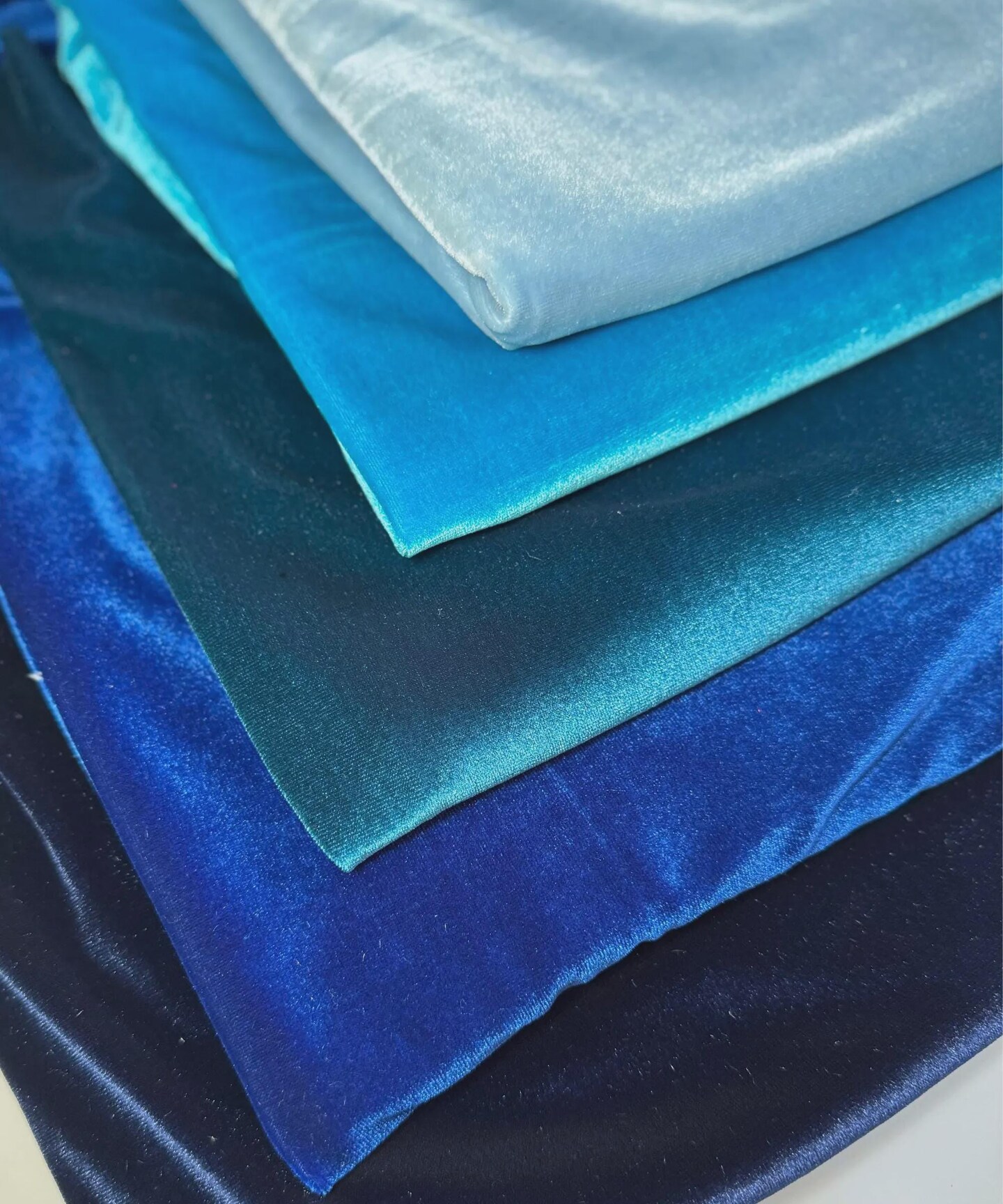 Blue Stretchy Stretch Velvet Fabric by the Yard, 58" Wide Plush Velvet 4-Way Stretch