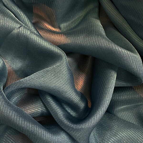 Blue Stripe Silk Chiffon Fabric By the Yard