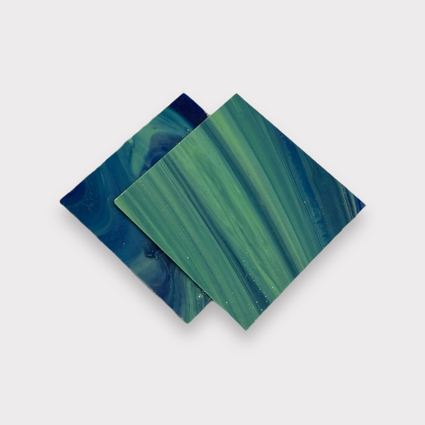 Blue Transparent Olive Green Prisma COE 96 Fusible Glass Sheets / Mosaic Squares - 2 Pack
