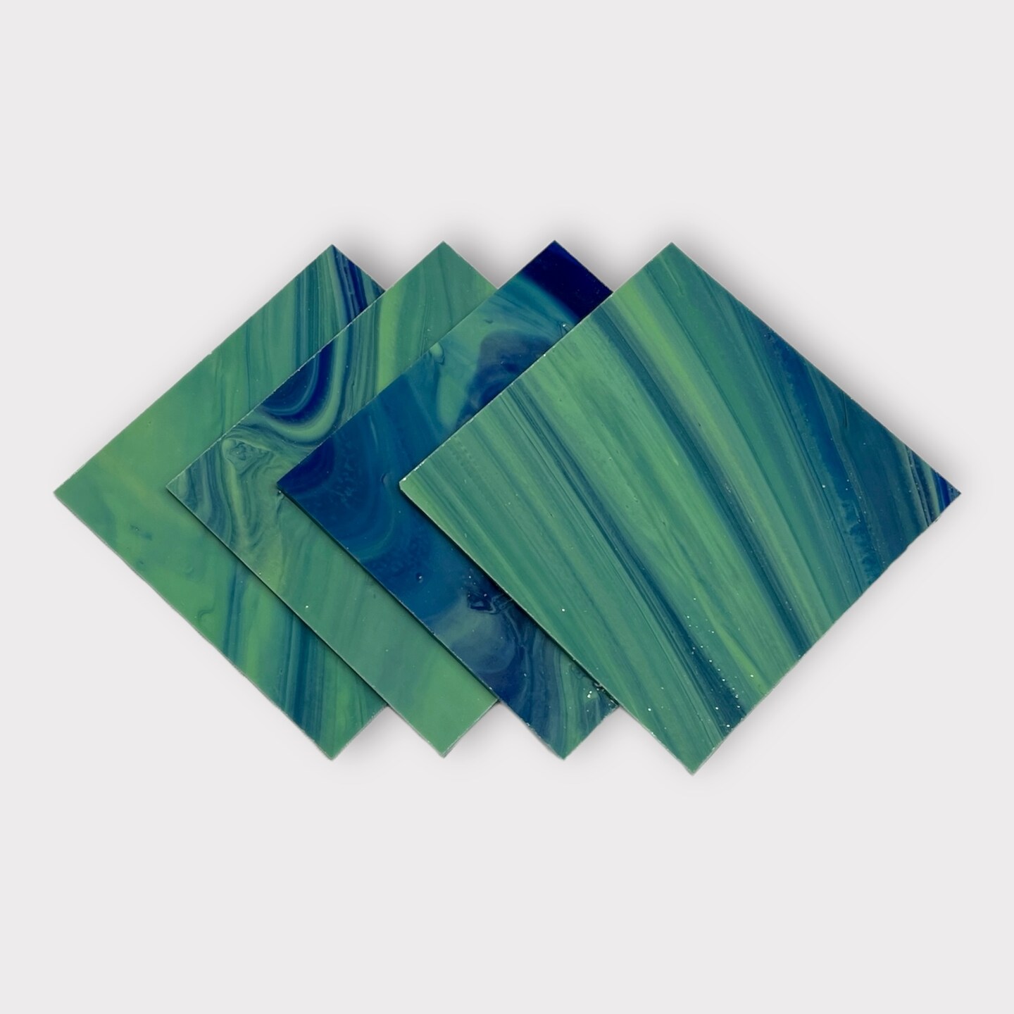 Blue Transparent Olive Green Prisma COE 96 Fusible Glass Sheets / Mosaic Squares