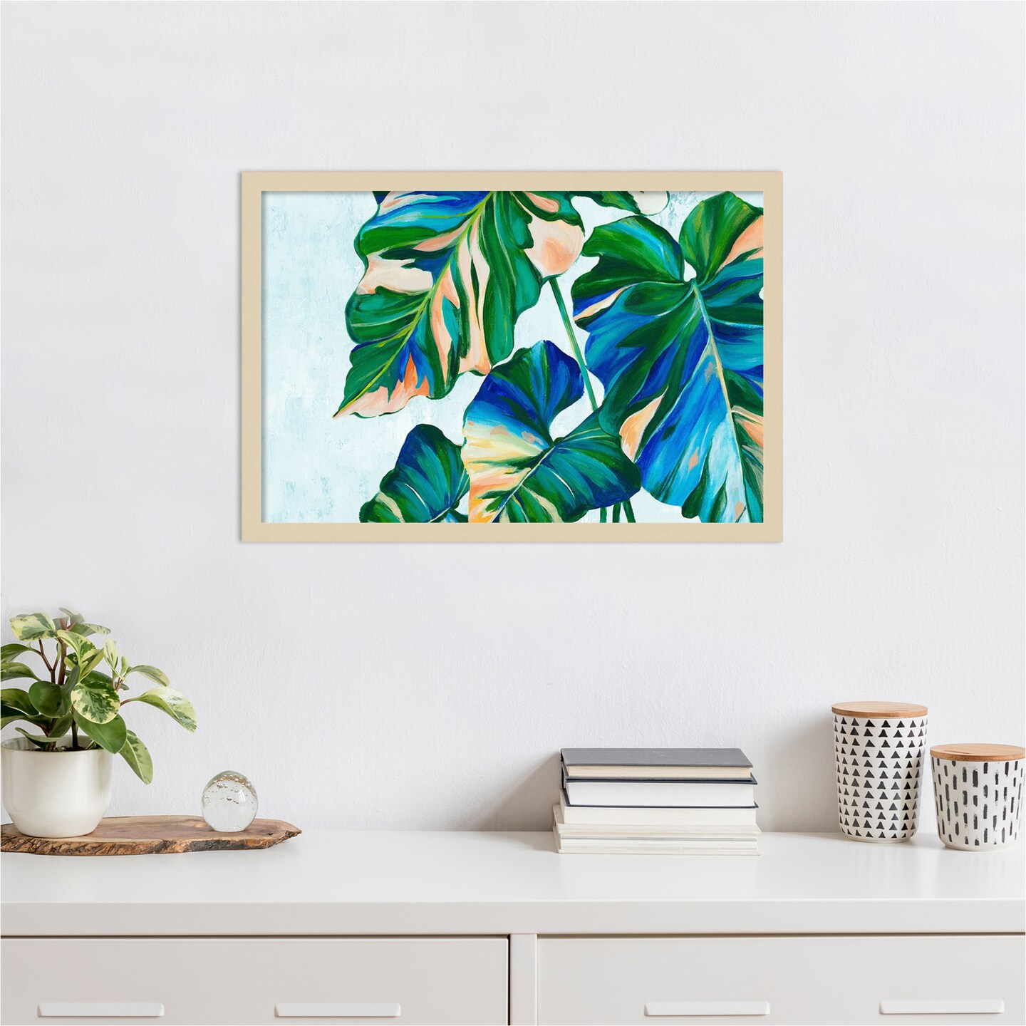 Blue Tropical Leaves I by Alex Black Wood Framed Wall Art Print