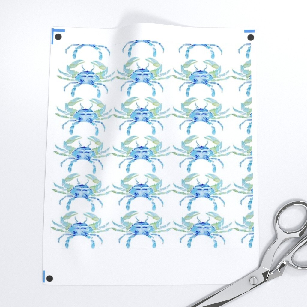 Blue Watercolor Crab Small Abstract Coastal Beach Whimsical Sand Ocean Creatures Scale Custom Pre-pasted Wallpaper by Spoonflower Pre-Pasted Wallpaper 2FT Wide