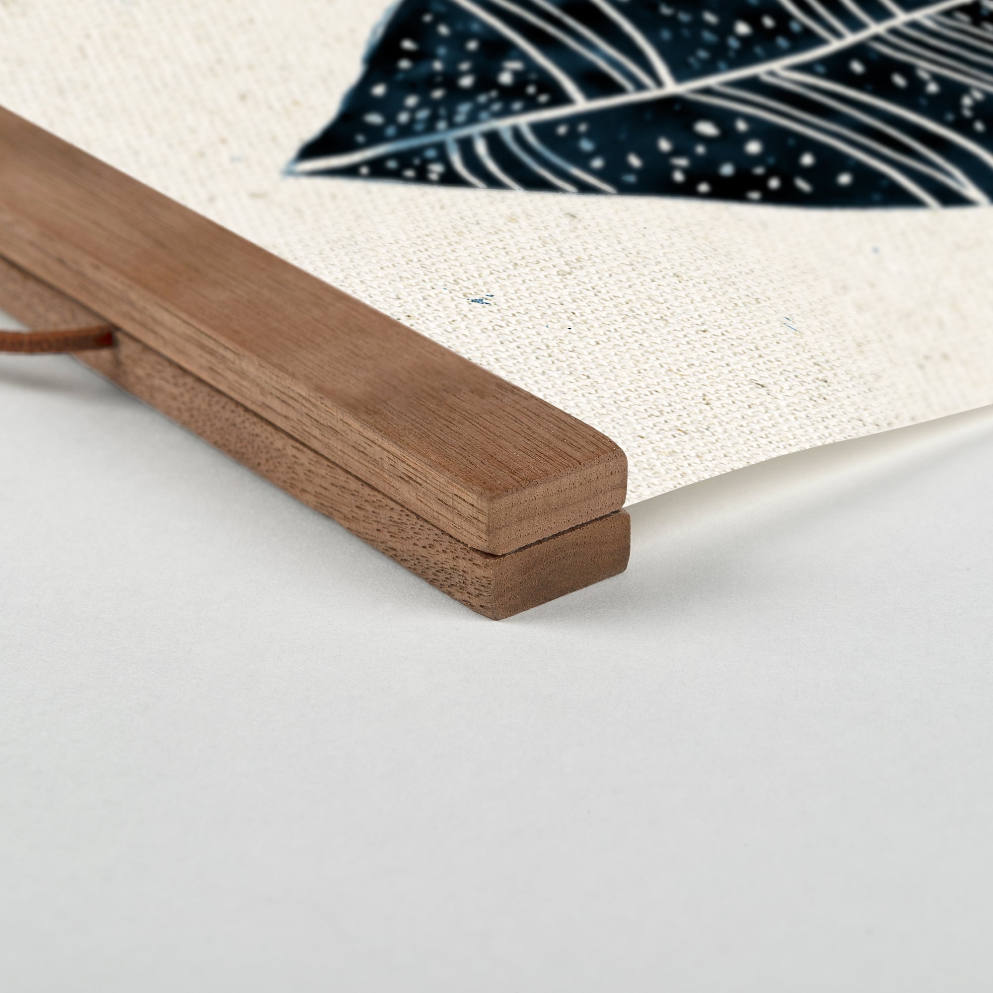Blue Watercolor Leaves 12" x 18" Teak Hanging Canvas