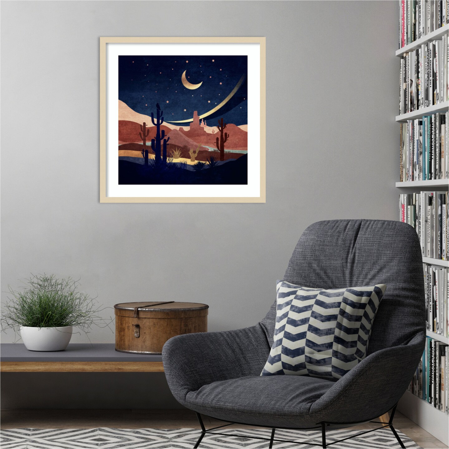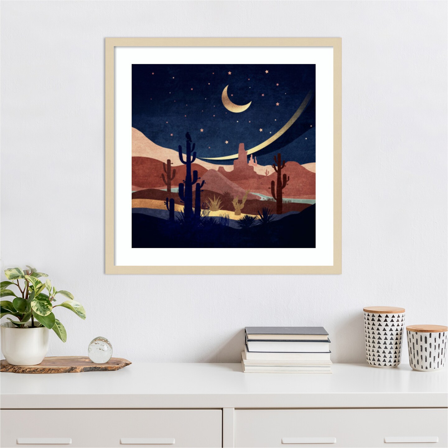 Blue Western Night by Emel Tunaboylu Wood Framed Wall Art Print