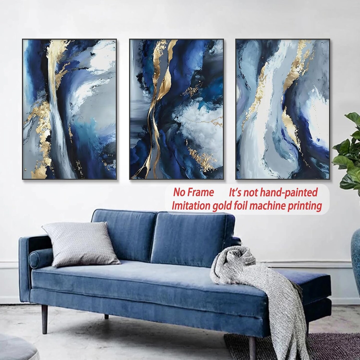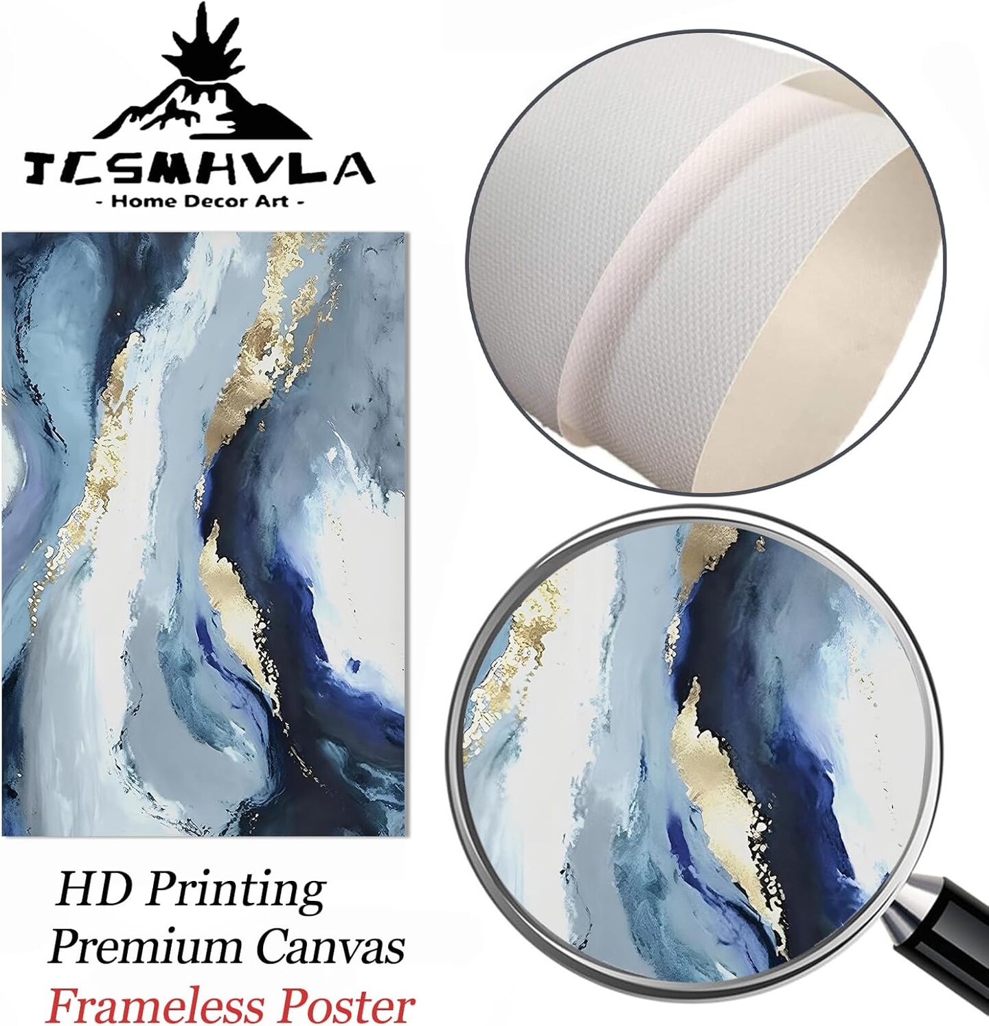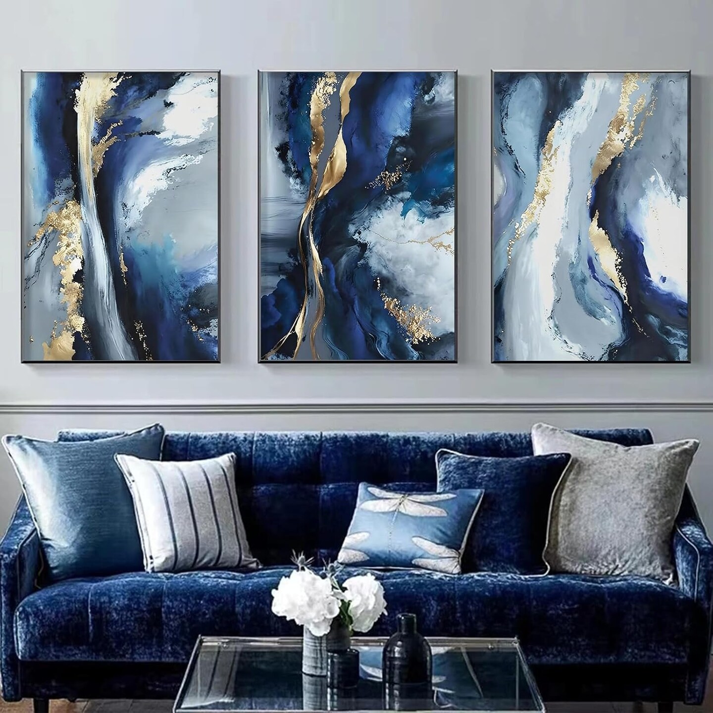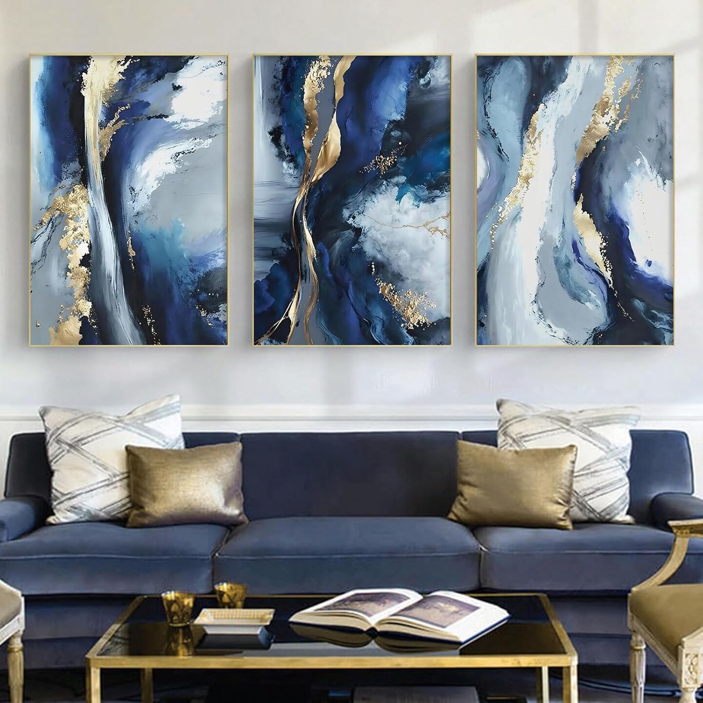 Blue White and Gold Abstract Canvas Wall Art