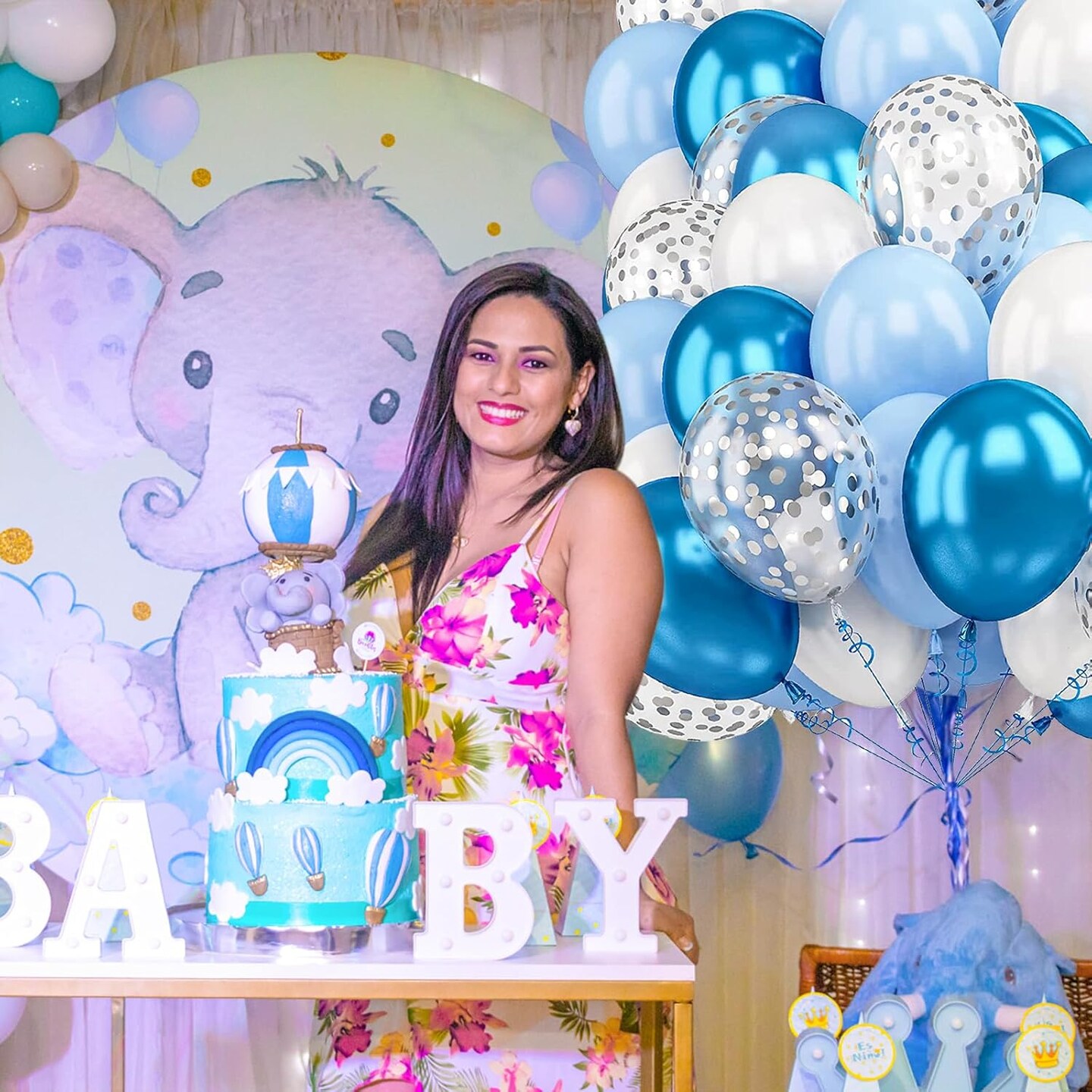 Blue White Balloons and Silver Confetti Balloons for Graduation Wedding Birthday Baby Shower Party Decorations